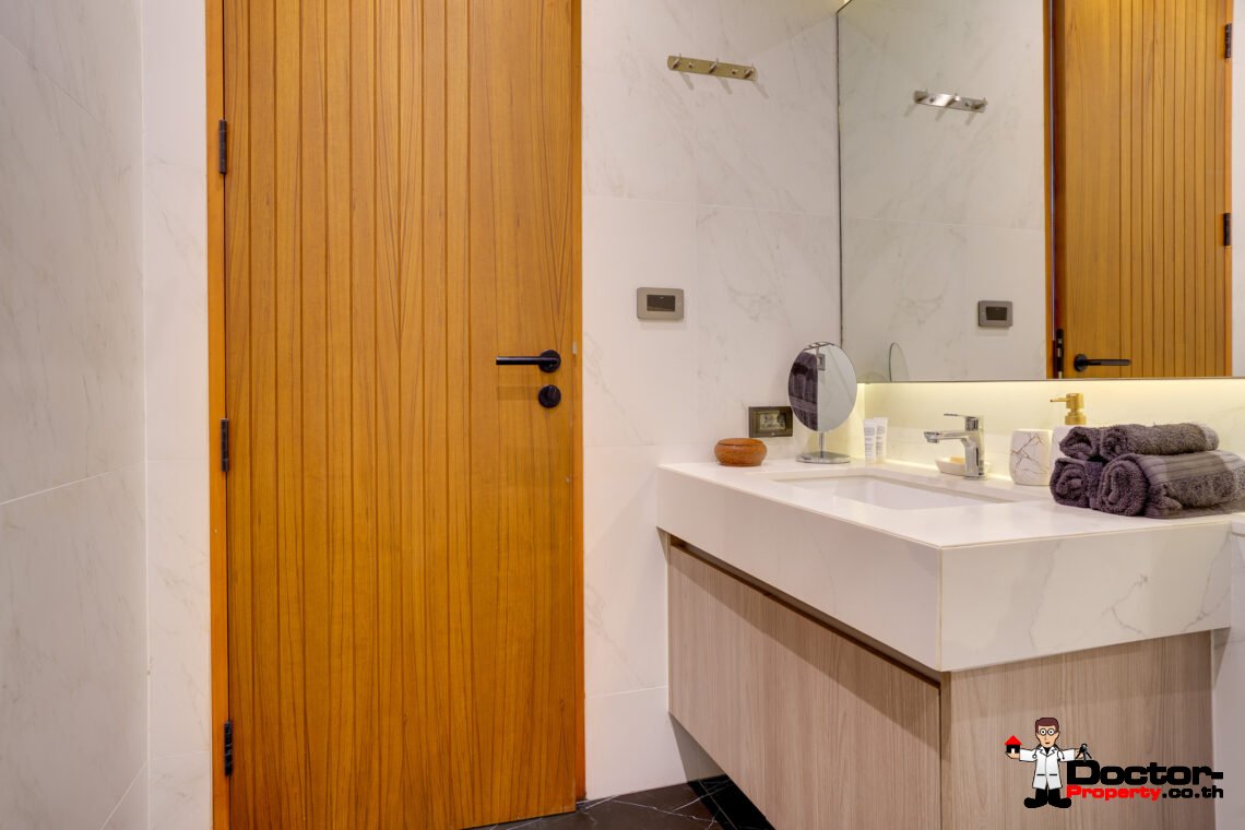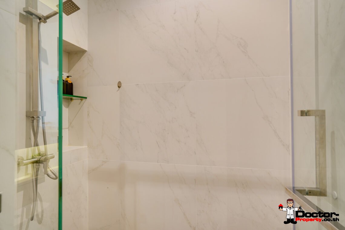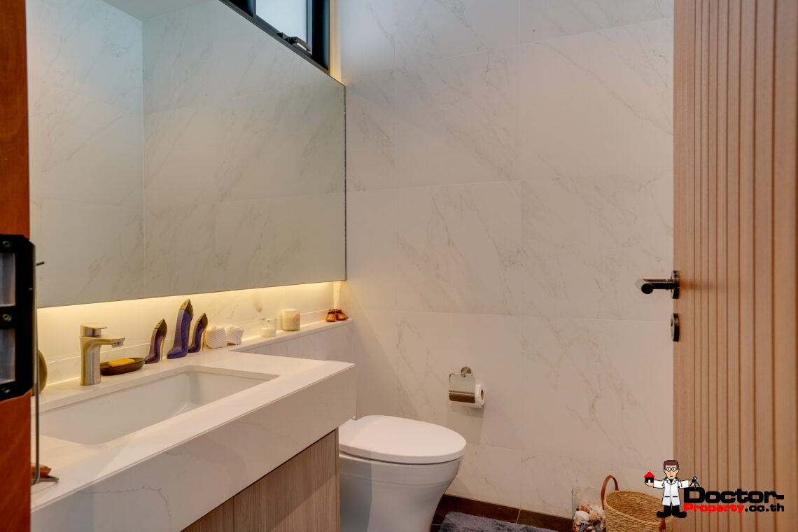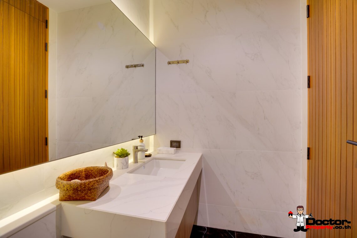 The villa features three generously sized bedrooms, each with large windows that open up to stunning views of the lush tropical surroundings or the sparkling sea. Designed to maximize natural light, the rooms feel airy and expansive, with ample space for king-sized beds and additional furniture. Each bedroom is equipped with built-in wardrobes offering plenty of storage space, ensuring that the villa is both functional and beautiful. Throughout the villa, no expense has been spared when it comes to the quality of materials used. The villa is finished with the highest quality fittings, including European-standard fixtures. The overall design strikes a perfect balance between modern elegance and practical comfort, ensuring that every corner of the home meets the highest standards of luxury living.
