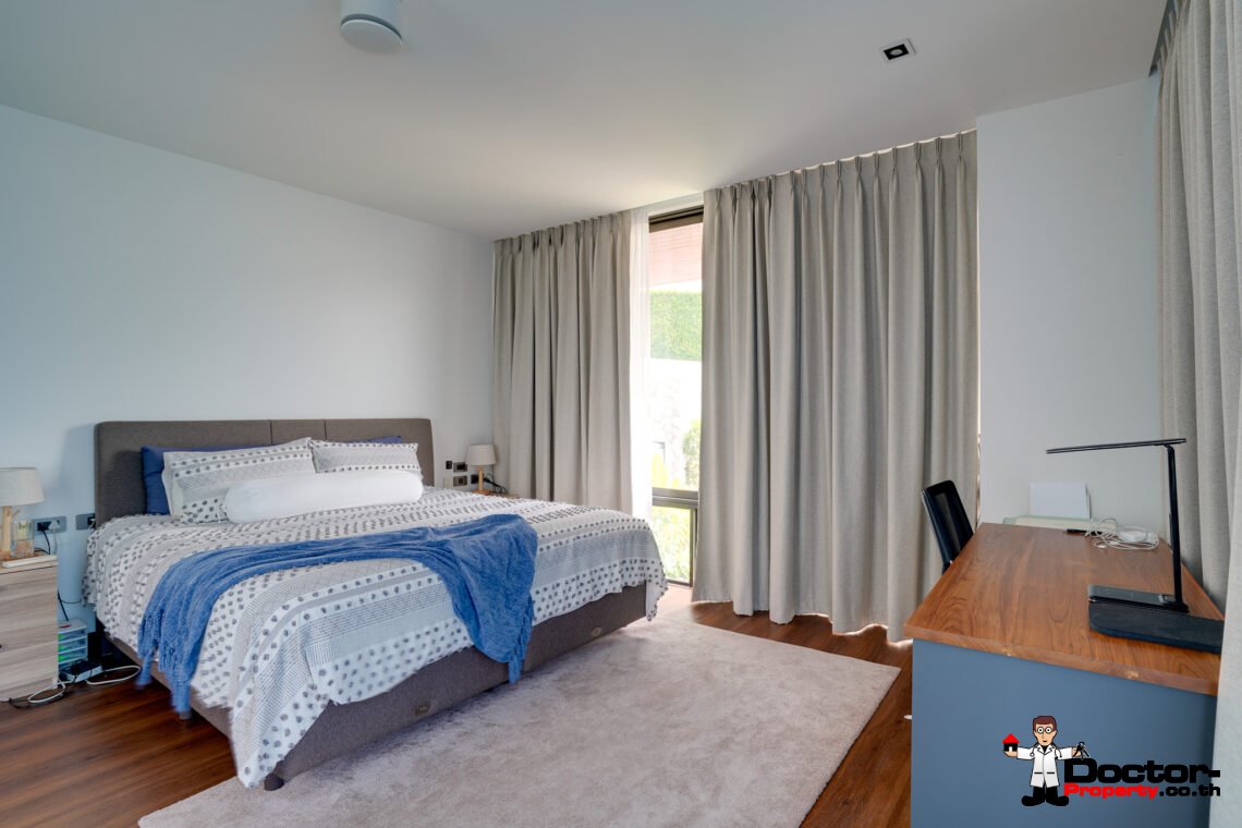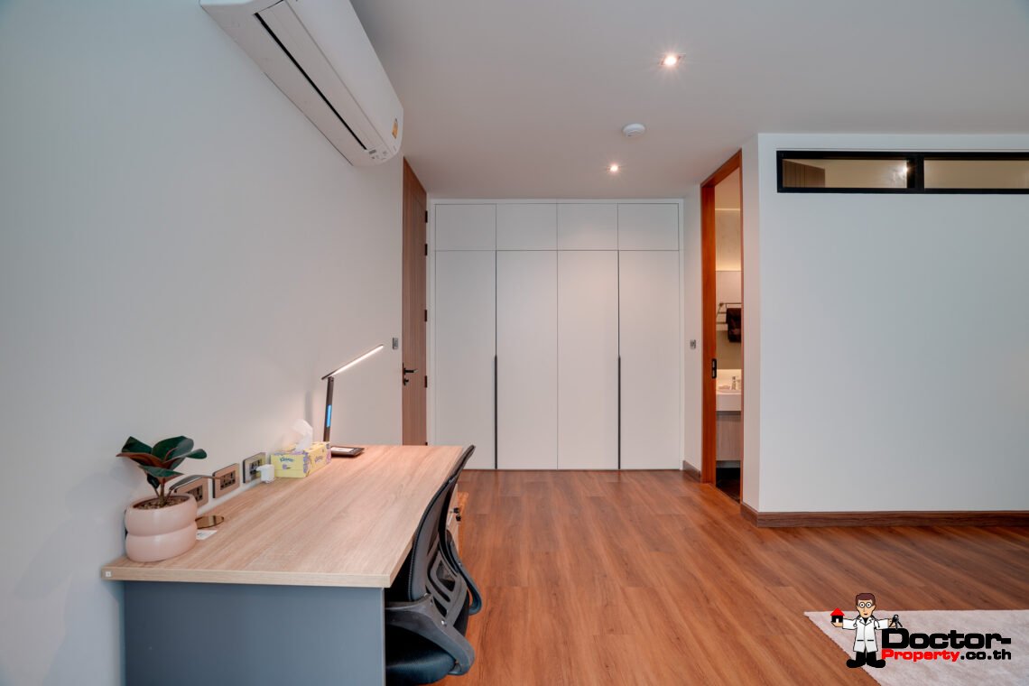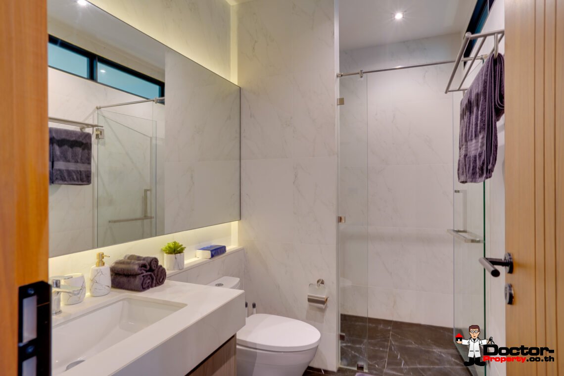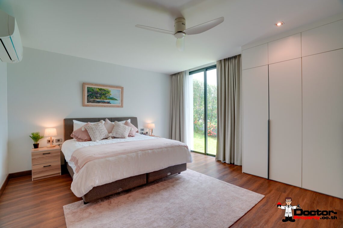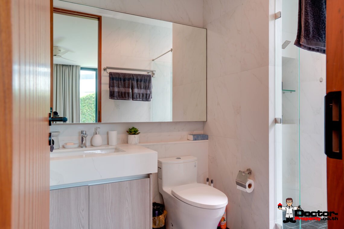 The villa features three generously sized bedrooms, each with large windows that open up to stunning views of the lush tropical surroundings or the sparkling sea. Designed to maximize natural light, the rooms feel airy and expansive, with ample space for king-sized beds and additional furniture. Each bedroom is equipped with built-in wardrobes offering plenty of storage space, ensuring that the villa is both functional and beautiful. Throughout the villa, no expense has been spared when it comes to the quality of materials used. The villa is finished with the highest quality fittings, including European-standard fixtures. The overall design strikes a perfect balance between modern elegance and practical comfort, ensuring that every corner of the home meets the highest standards of luxury living.