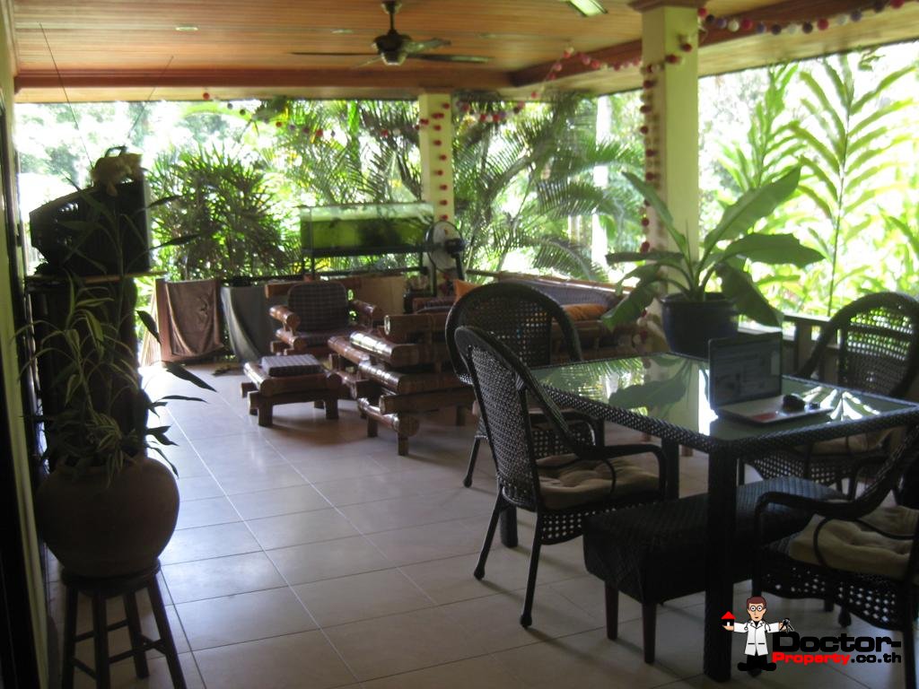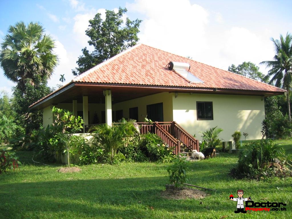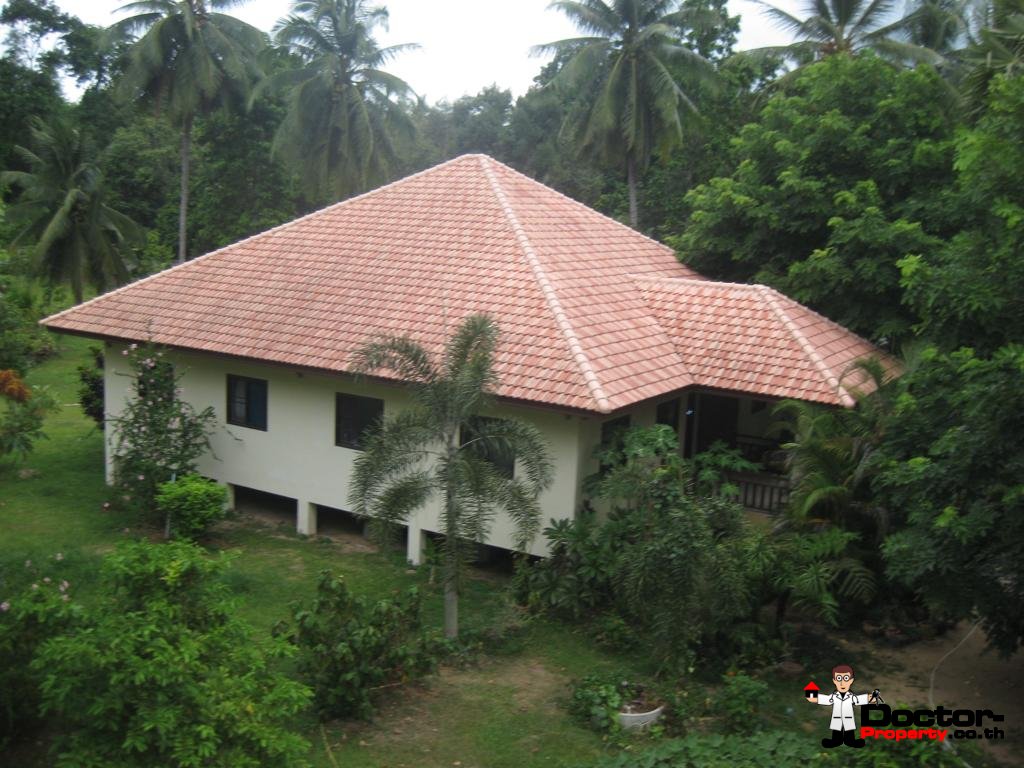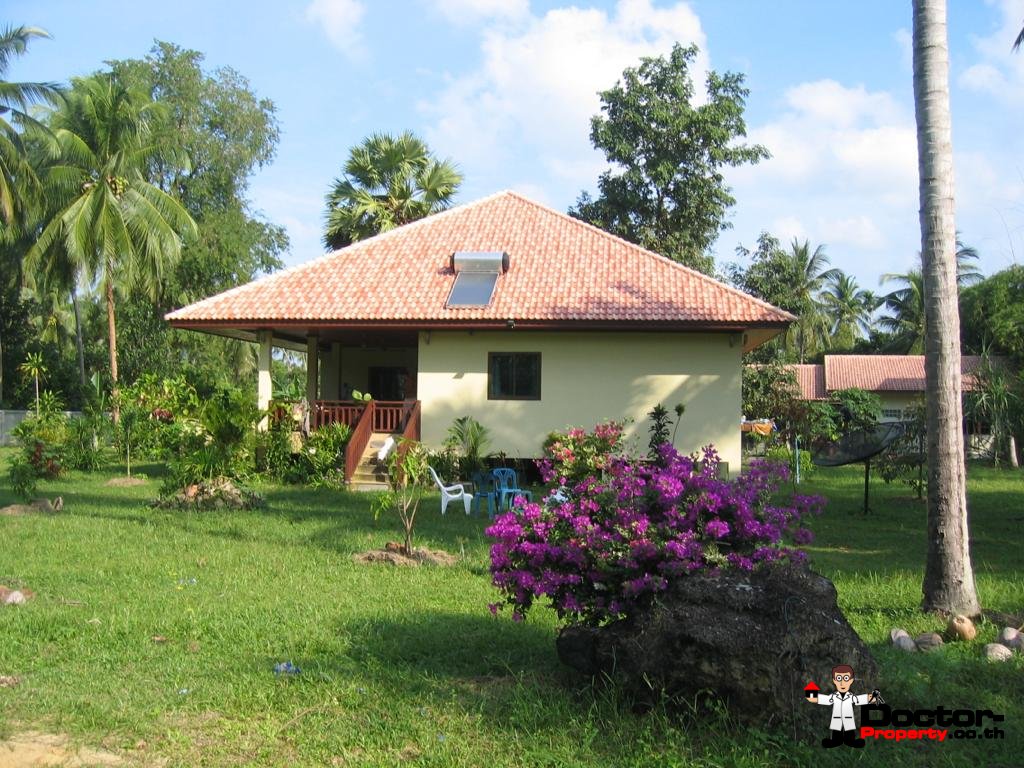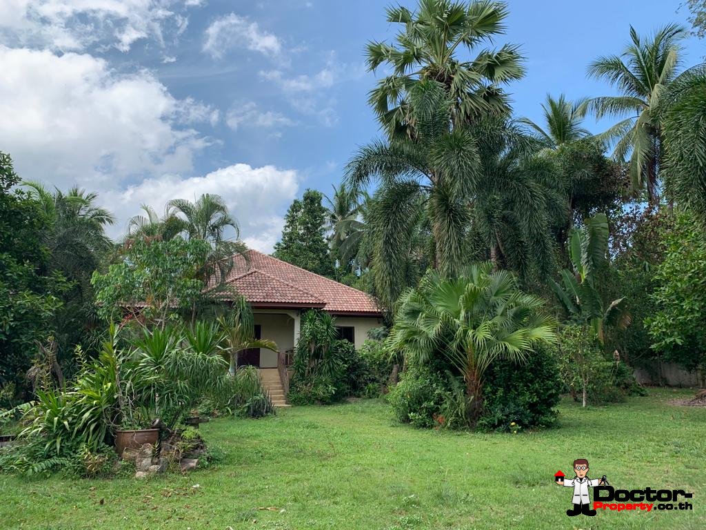 Eine große idyllische Immobilie in tropischer Landschaft wartet auf einen neuen Besitzer. Hier haben Sie die Möglichkeit ein Haus und 2 Bungalows mit einem über 6200 m2 großen Grundstück zu erwerben. Diese Immobilie befindet sich in Lipa Noi, im Westen der Insel Koh Samui und ist sehr gut über eine öffentliche Straße erreichbar. Lipa Noi ist geprägt durch seine tropischen Landschaften und seiner noch wenig bebauten Infrastruktur. Dennoch finden Sie auch hier einige Einkaufsmöglichkeiten und hiesige Restaurants. Bis zur nächstgrößere Stadt Nathon benötigen Sie ungefähr 10 Fahrminuten. Hier finden Sie eine Vielzahl an Restaurants, Bars, Banken und Einkaufsmöglichkeiten. Von hier aus sind auch Fährfahrten auf das Festland möglich.