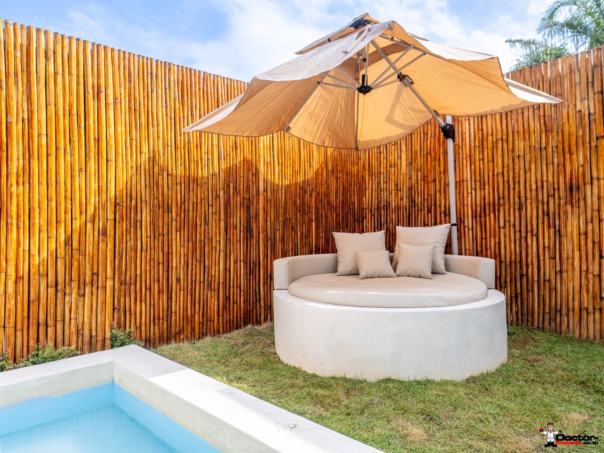 Jede Villa ist ein privates Refugium mit eigenem Swimmingpool und angelegtem Garten, sodass die Bewohner einen ruhigen Rückzugsort im Herzen der Insel genießen können. Die Innenräume sind modern gestaltet und verfügen über eine voll ausgestattete Küche und ein elegantes Badezimmer, die Funktionalität und Stil vereinen. Klimaanlage und Flachbildfernseher sind inklusive, sodass Sie sich sofort wie zu Hause fühlen können. Die Wohnräume gehen fließend in den Außenbereich über, wo stilvolle Möbel das Ambiente sowohl innen als auch außen unterstreichen. Jede Villa ist eine private Oase mit eigenem Swimmingpool und angelegtem Garten, die den Bewohnern einen erholsamen Aufenthalt im Herzen der Insel ermöglicht.