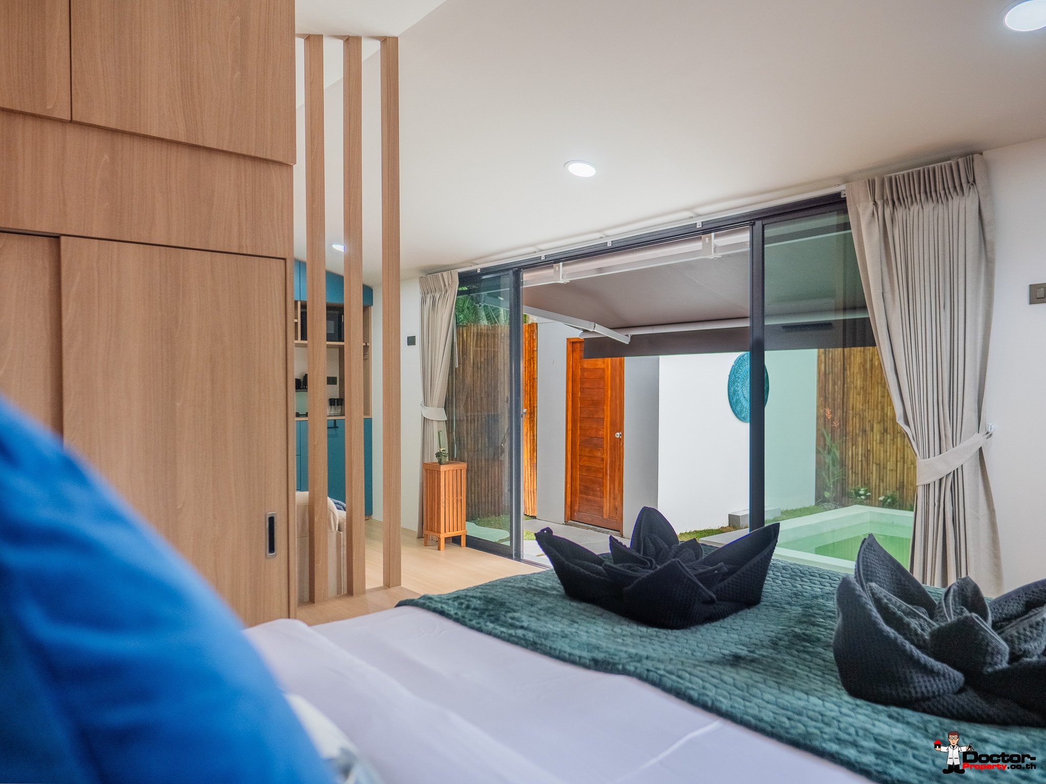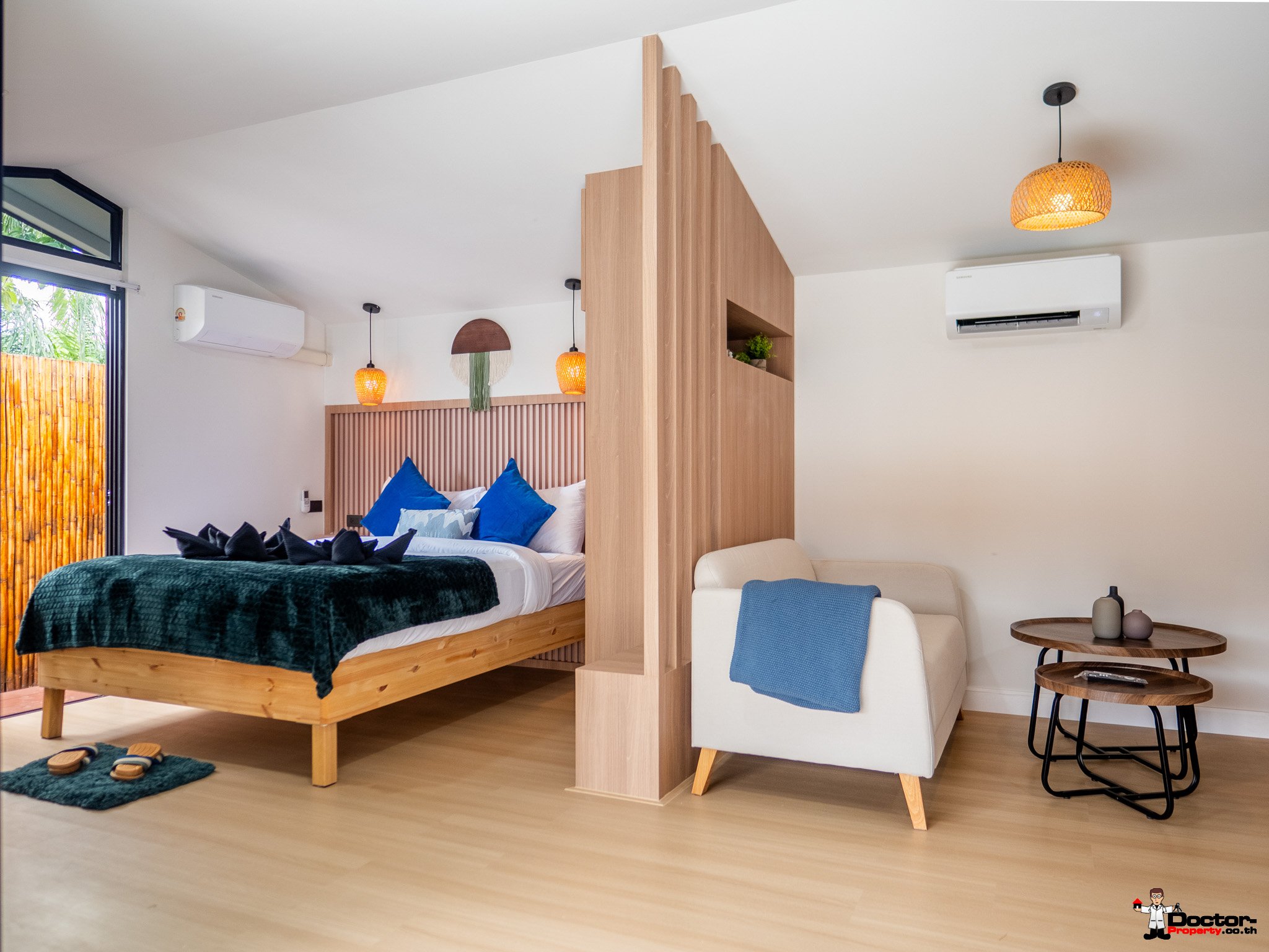 In der ruhigen Enklave von Ban Tai auf Koh Samui gelegen, bietet dieses exklusive Boutique-Projekt die seltene Gelegenheit, ein Stück Paradies zu besitzen. Das Projekt umfasst neun exklusive, freistehende Studio-Villen, die alle mit einem durchdachten, offenen Grundriss gestaltet sind, der modernen Komfort mit tropischer Eleganz verbindet. Inmitten einer friedlichen Wohngegend bieten diese Villen die perfekte Balance zwischen Privatsphäre und Komfort, denn unberührte Strände, lokale Geschäfte und Restaurants sind nur wenige Schritte entfernt.