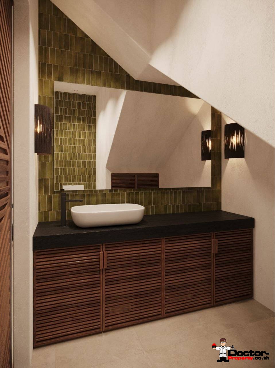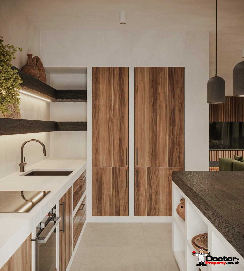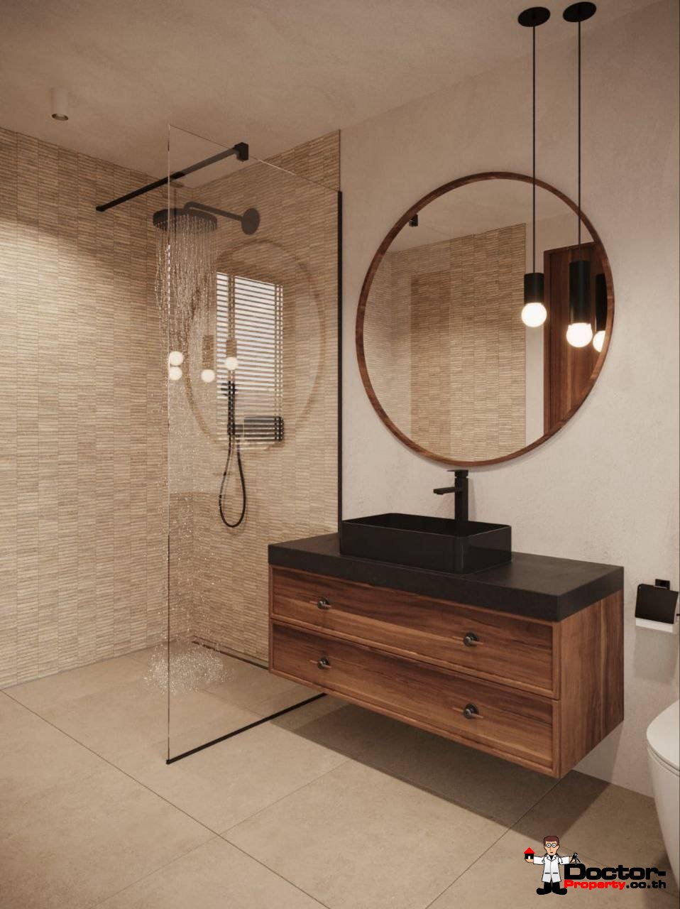 Die Villa besticht durch ihr modernes, offenes Design, bei dem großzügige Wohnbereiche nahtlos in den Außenbereich übergehen und so eine einladende Atmosphäre zum Entspannen und für gesellige Stunden schaffen. Mit drei großzügigen Schlafzimmern, jedes mit großen Fenstern und Einbauschränken, bietet die Villa ihren Bewohnern maximalen Komfort und Privatsphäre. Die Master-Suite mit eigenem Bad ist ein Highlight und bietet einen luxuriösen Raum zum Entspannen und Genießen der wunderschönen tropischen Umgebung.
