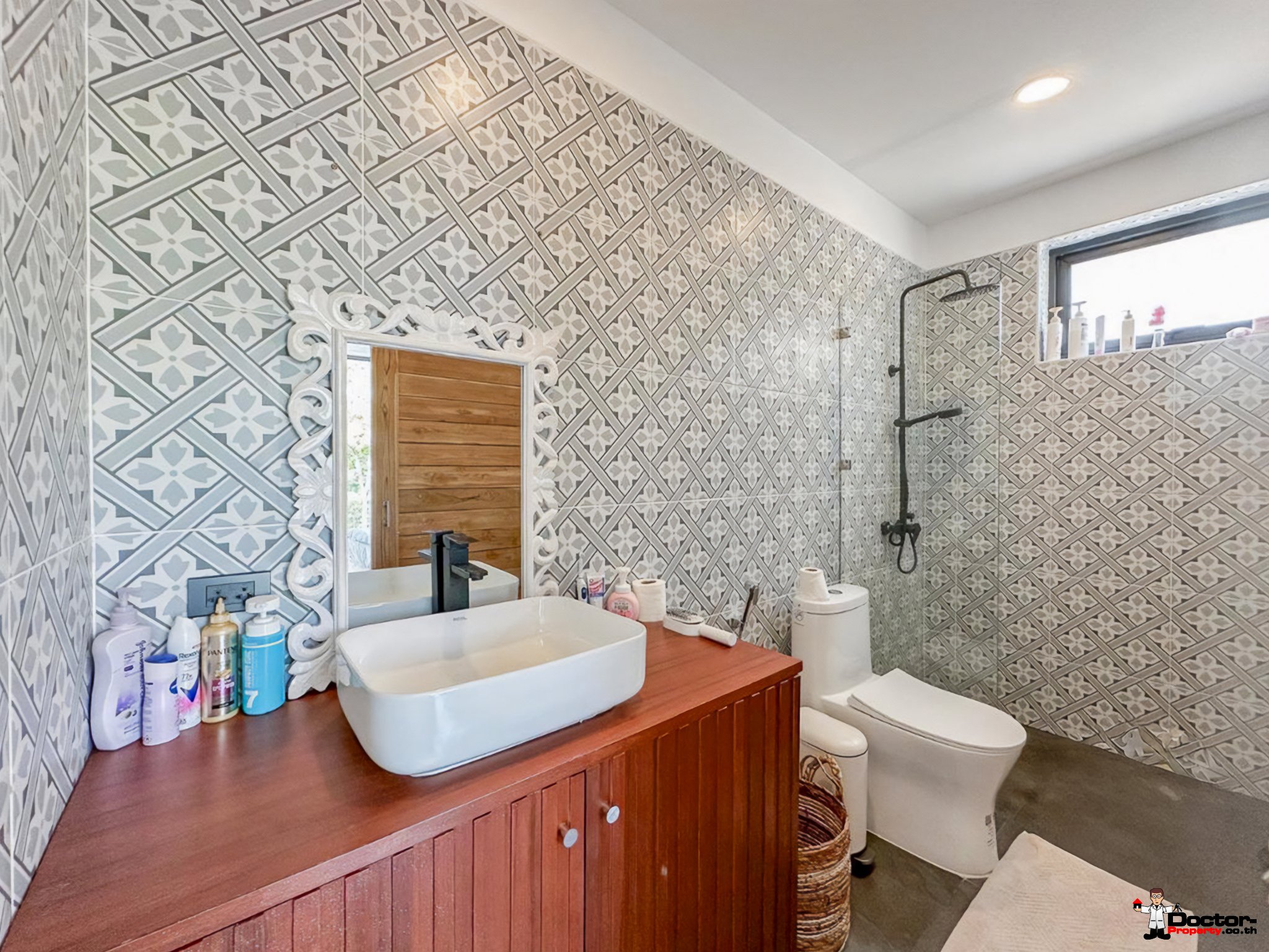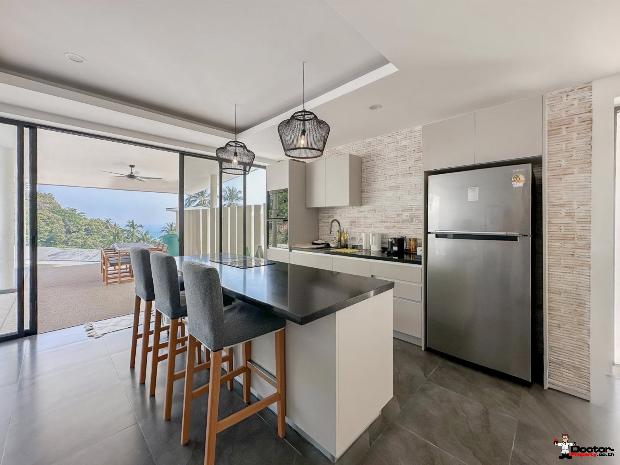Das Anwesen ist eine moderne, zweistöckige Villa, die mit viel Liebe zum Detail gestaltet wurde, um modernen Komfort mit tropischer Eleganz zu verbinden. Auf zwei Ebenen verteilt, bietet das Erdgeschoss einen lichtdurchfluteten Wohnbereich mit einer voll ausgestatteten Küche sowie ein geräumiges Schlafzimmer mit eigenem Bad. Große Fensterfronten verbinden diesen Bereich direkt mit der Terrasse und dem privaten Infinity-Pool und schaffen so einen harmonischen Übergang zwischen Innen- und Außenbereich. Im Obergeschoss befinden sich zwei weitere Schlafzimmer, jeweils mit eigenem Bad, sowie ein Ankleidezimmer und eine Terrasse mit herrlichem Blick auf die umliegende Landschaft. Das Gesamtkonzept gewährleistet eine ideale Balance aus Komfort, Privatsphäre und elegantem Ambiente und macht die Villa somit perfekt geeignet für dauerhaftes Wohnen und Ferienaufenthalte.
