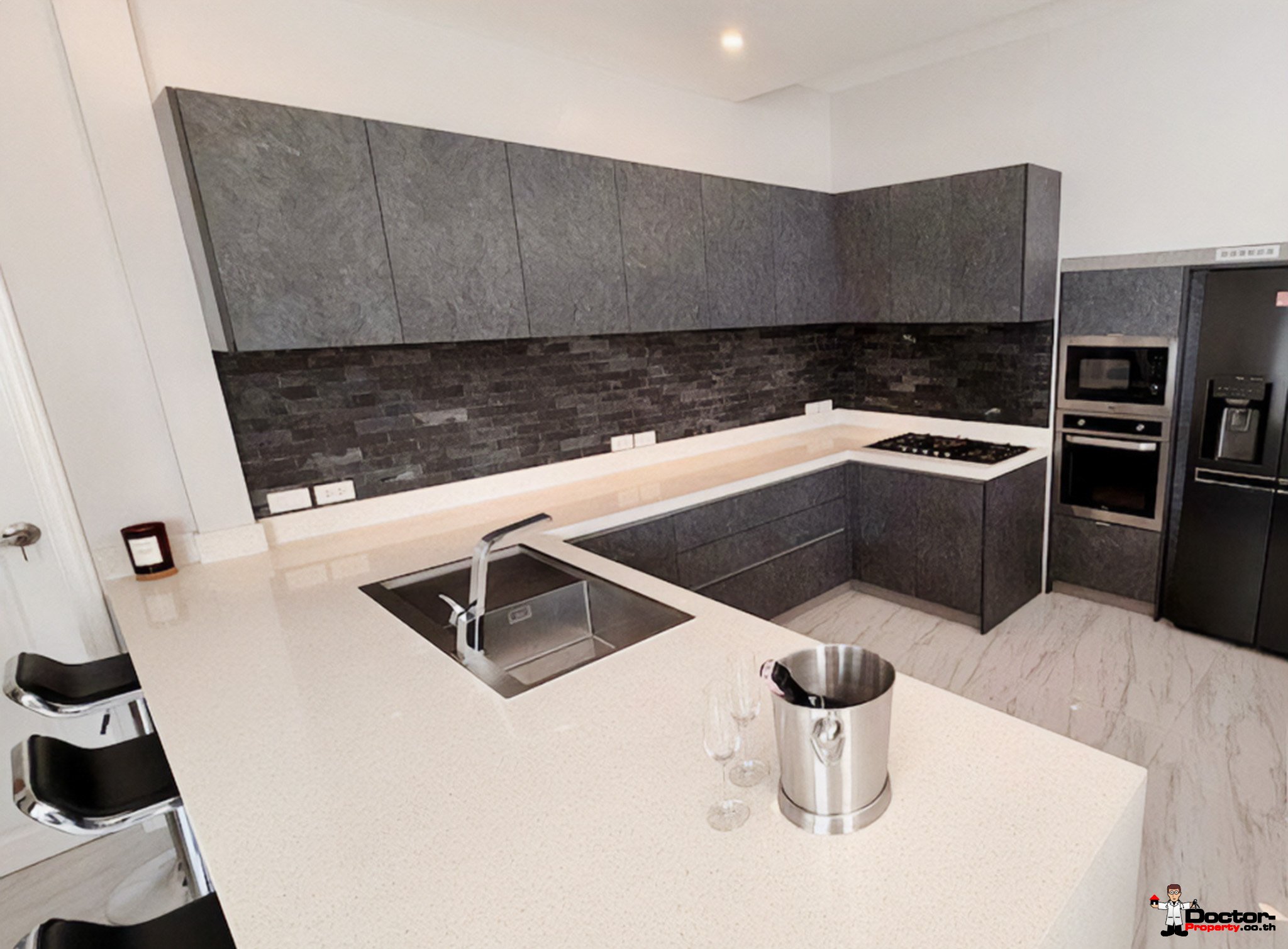 Auf einem großzügigen 556 m² großen Grundstück gelegen, bietet die Villa dank ihrer durchdachten Raumaufteilung weitläufige Wohnbereiche. Mit drei geräumigen Schlafzimmern und mehreren Badezimmern ist die Villa auf Komfort und Stil ausgelegt. Der offene Wohn- und Essbereich geht fließend in die Außenterrasse über, wo ein privater Swimmingpool und ein angelegter Garten einen Ort der Ruhe und Entspannung schaffen. Eine moderne Küche mit hochwertiger Ausstattung unterstreicht die Attraktivität des Hauses, während die Klimaanlage ganzjährigen Komfort garantiert. Das Design der Villa maximiert das natürliche Licht und den Raum und schafft eine harmonische Verbindung zwischen Innen- und Außenbereich.