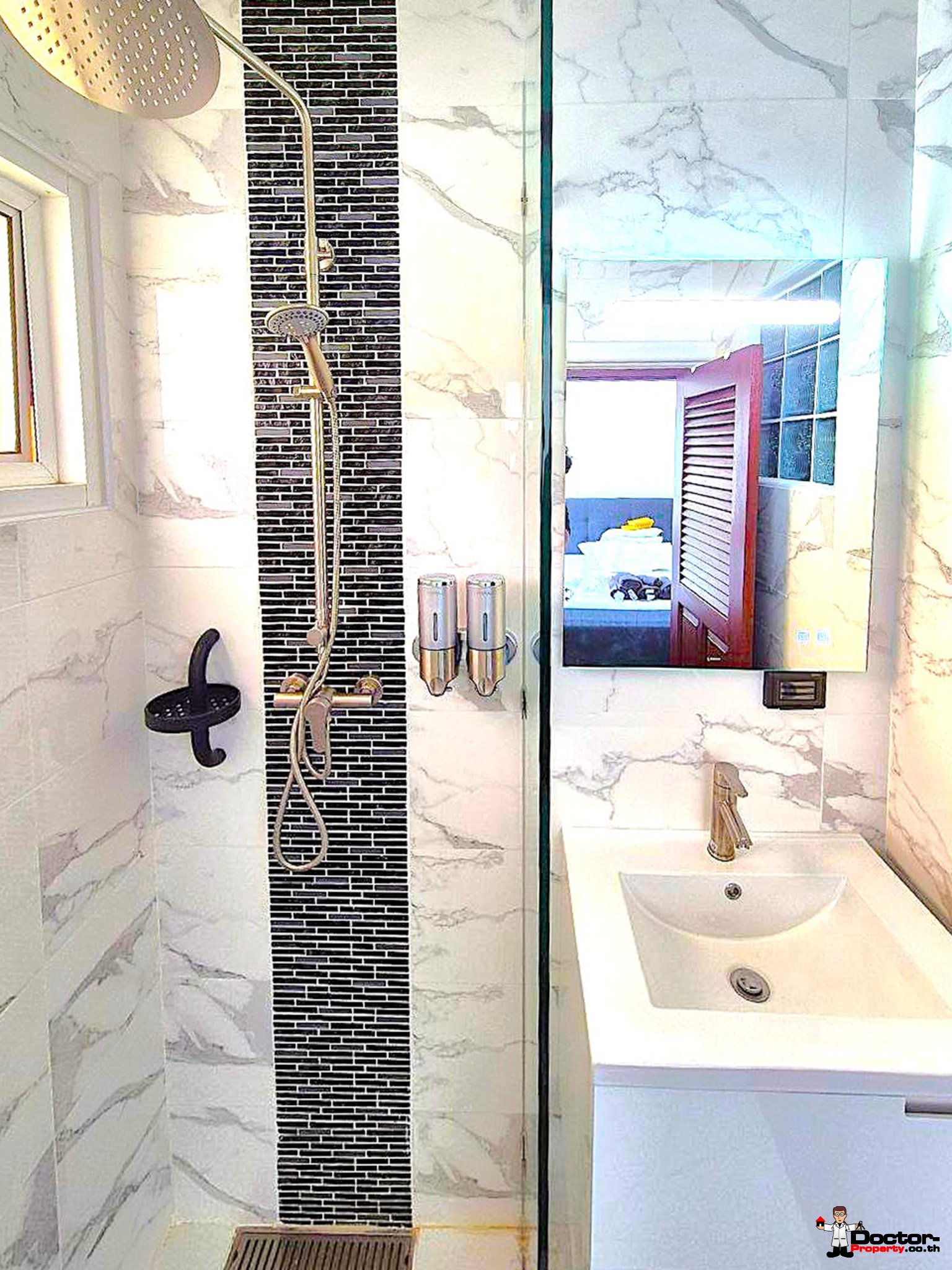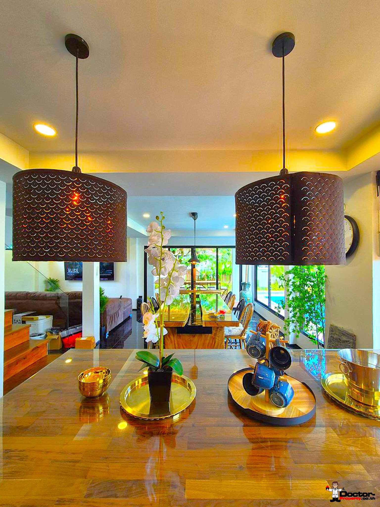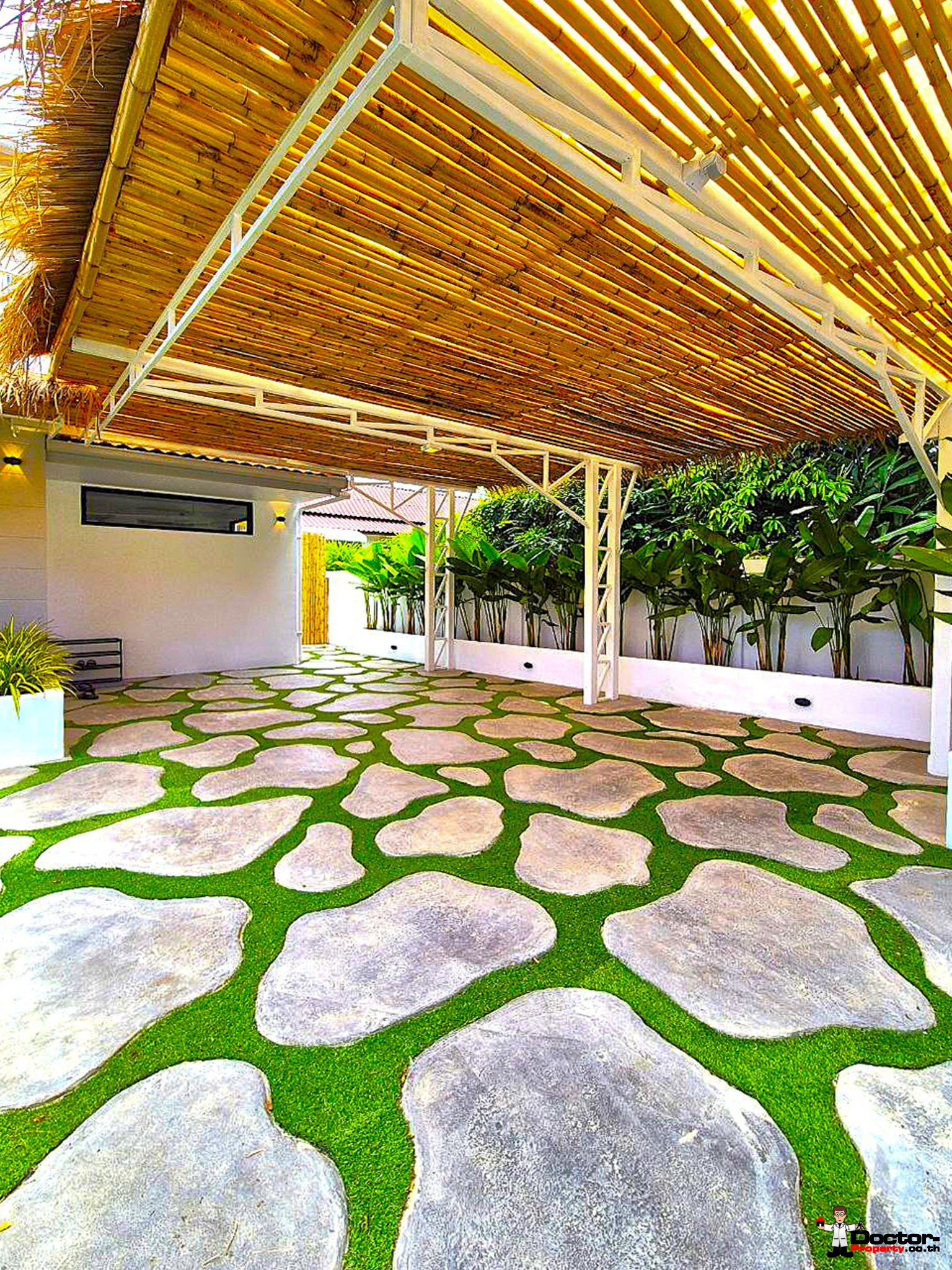 Dieses beeindruckende zweistöckige Haus wurde sorgfältig entworfen, um modernen Komfort mit natürlicher Eleganz zu verbinden. Auf einem 260 Quadratmeter großen Grundstück und einer großzügigen Wohnfläche von 200 Quadratmetern bietet das Anwesen viel Platz für Familien und Unterhaltung. Die Innenräume sind in einem raffinierten, natürlichen Design gestaltet und schaffen ein warmes und einladendes Ambiente, das mit der tropischen Umgebung harmoniert. Das Herzstück des Hauses bildet der private Swimmingpool mit einem beeindruckenden Wasserfall, der sowohl optisch ansprechend als auch beruhigend wirkt. Mit fünf geräumigen Schlafzimmern eignet sich die Residenz perfekt für größere Familien oder alle, die Gäste stilvoll beherbergen möchten.