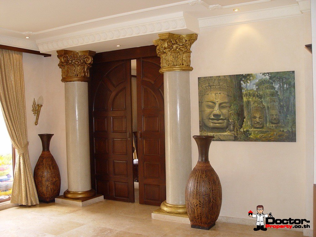 Dieses Angebot beinhaltet eine Kombination aus verschiedenen Unterkünften. Zum Einen setzt sich das Angebot aus dem großen Haupthaus mit 7 Schlafzimmern zusammen. Zum Anderen gehören noch 3 Gäste Villen mit jeweils 3 Schlafzimmer und noch weitere 4 Apartments mit jeweils einen Schlafzimmer zum Angebot mit dazu. 2007 wurde dieses Anwesen fertiggestellt und besticht natürlich durch seine direkte Lage am Strand, als auch durch seinen traumhaften Meerblick und den Blick auf die 5 kleinen Inseln. Der eigene Strandabschnitt ist 45 Meter lang. Alle Häuser und Apartments sind komplett hochwertig ausgestattet und möbliert. Alle Zimmer sind mit einer Klimaanlage versehen. Eine Hotellizenz ist vorhanden. Das Grundstück verfügt ebenfalls über einen eigenen Wasserbrunnen. Der Salzwasserpool ist 16 x 6 Meter groß und wird von der großen Sonnenterrasse umschlossen. Am Rand befindet sich eine kleine Bar mit integrierter kleinen Küche, sowie ein angrenzender Essbereich. Zum Anwesen gehört ebenfalls eine gut ausgestattete Turnhalle mit Boxring, Aerobic-Ausrüstung, Umkleideraum, Duschen und WC.