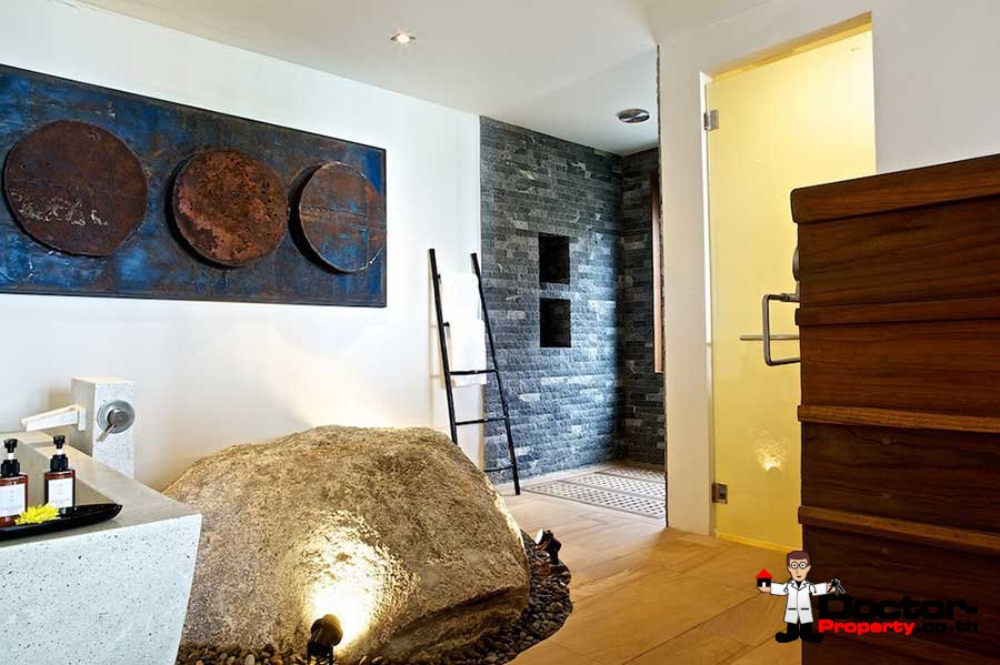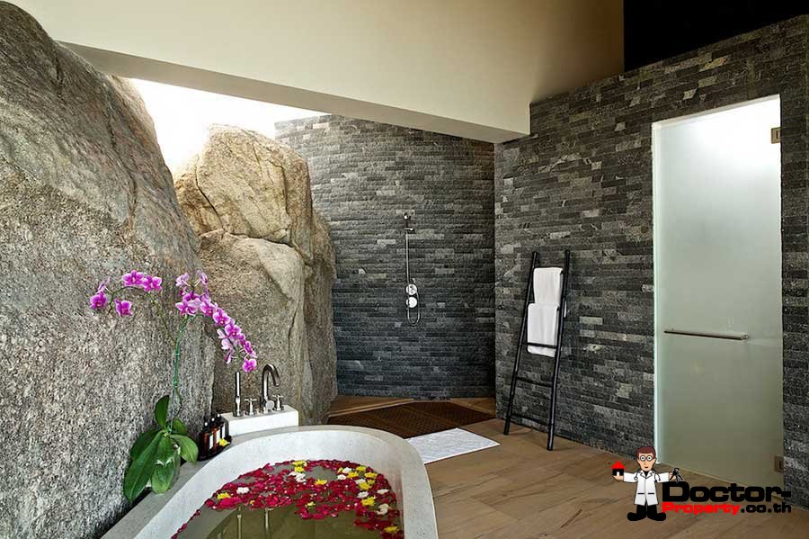 Diese wunderbare Villa, direkt am feinen Sandstrand und atemberaubend in die hiesige Naturstein Landschaft eingebunden, ist nur mit Superlativen zu beschreiben. Das gesamte Anwesen wurde mit den besten Materialien und hochwertigen Möbeln ausgestattet. Sie werden sich sofort heimisch fühlen. Diese Villa verfügt über insgesamt 5 Schlafzimmer, 6 Badezimmer, einen offenen Wohn-, Ess- und Küchenbereich und ist auf 3 Etagen verteilt. Im Außenbereich befindet sich der 20 Meter lange Infinity Pool mit integriertem Jacuzzi und Kinderpool. Überdachte Stellplätze und Diensträume für die Angestellten gehören selbstverständlich mit zum Anwesen.