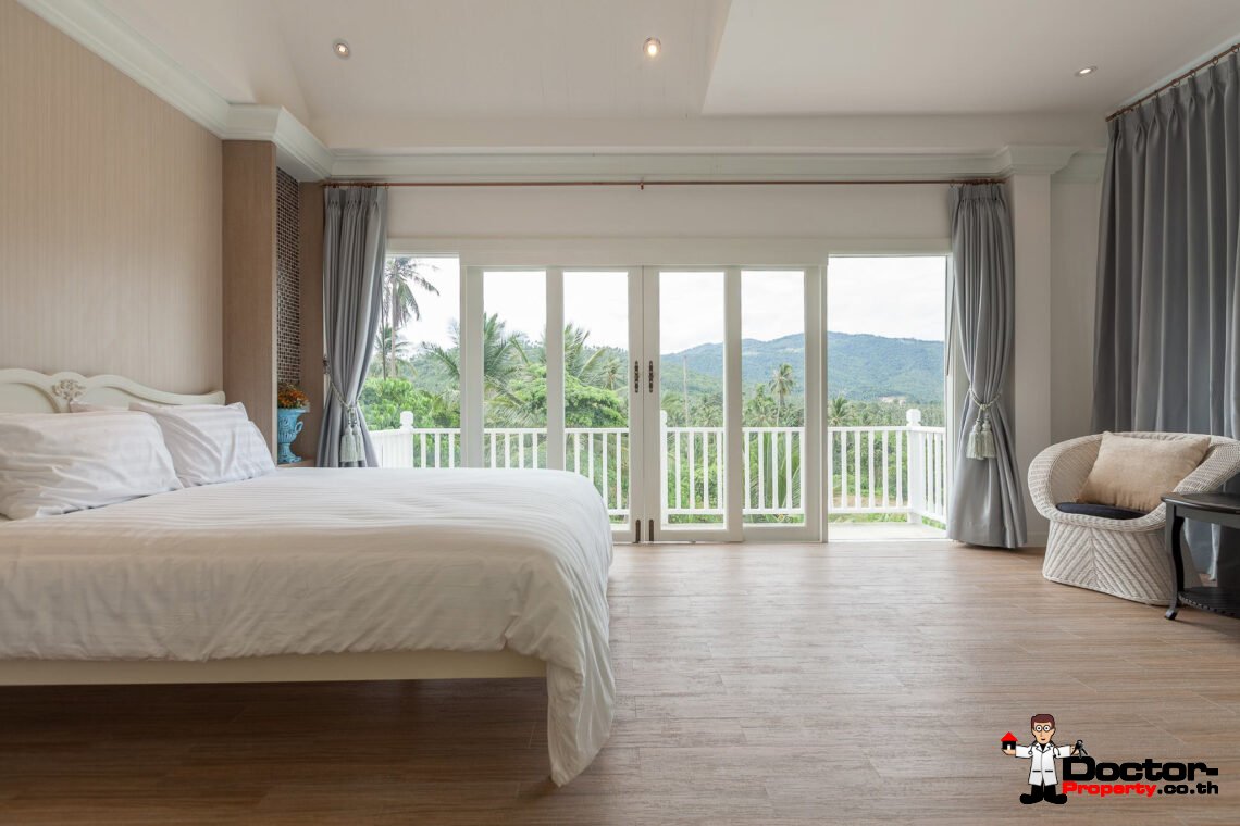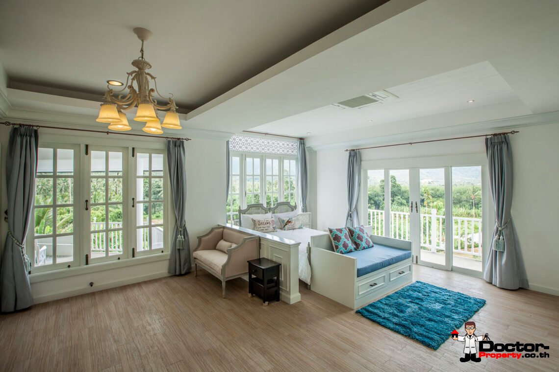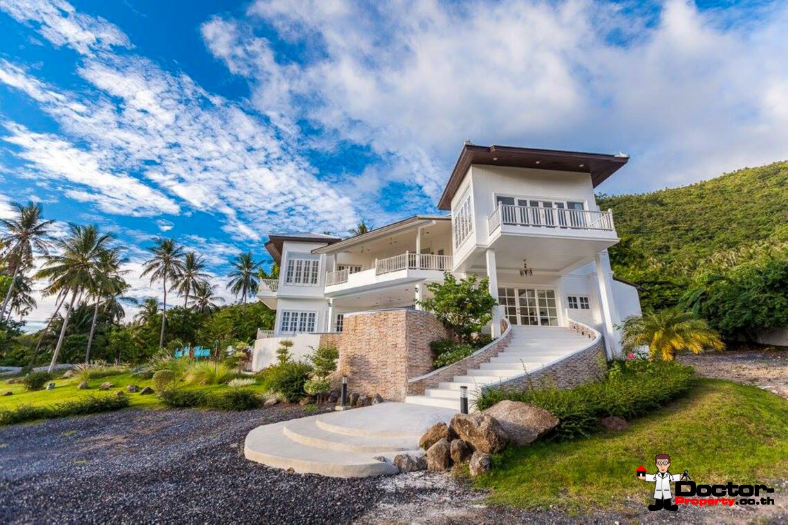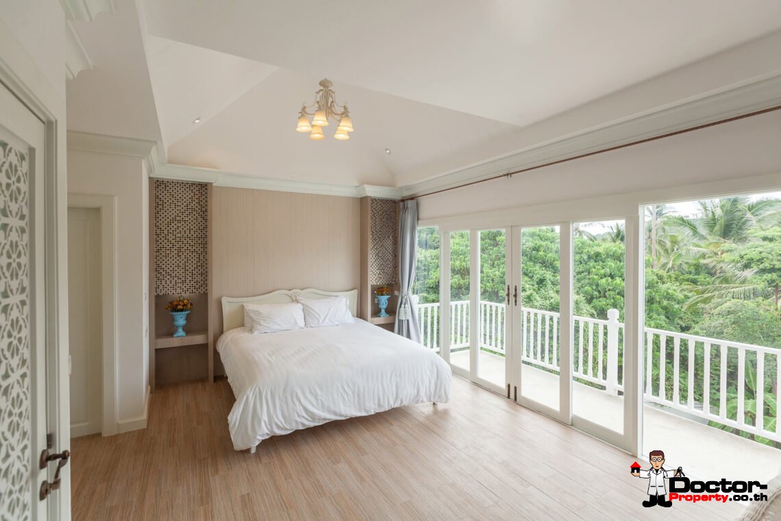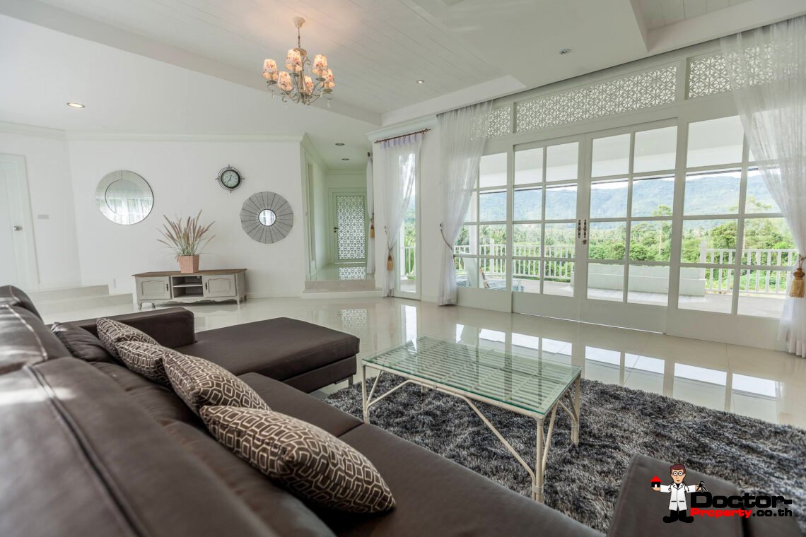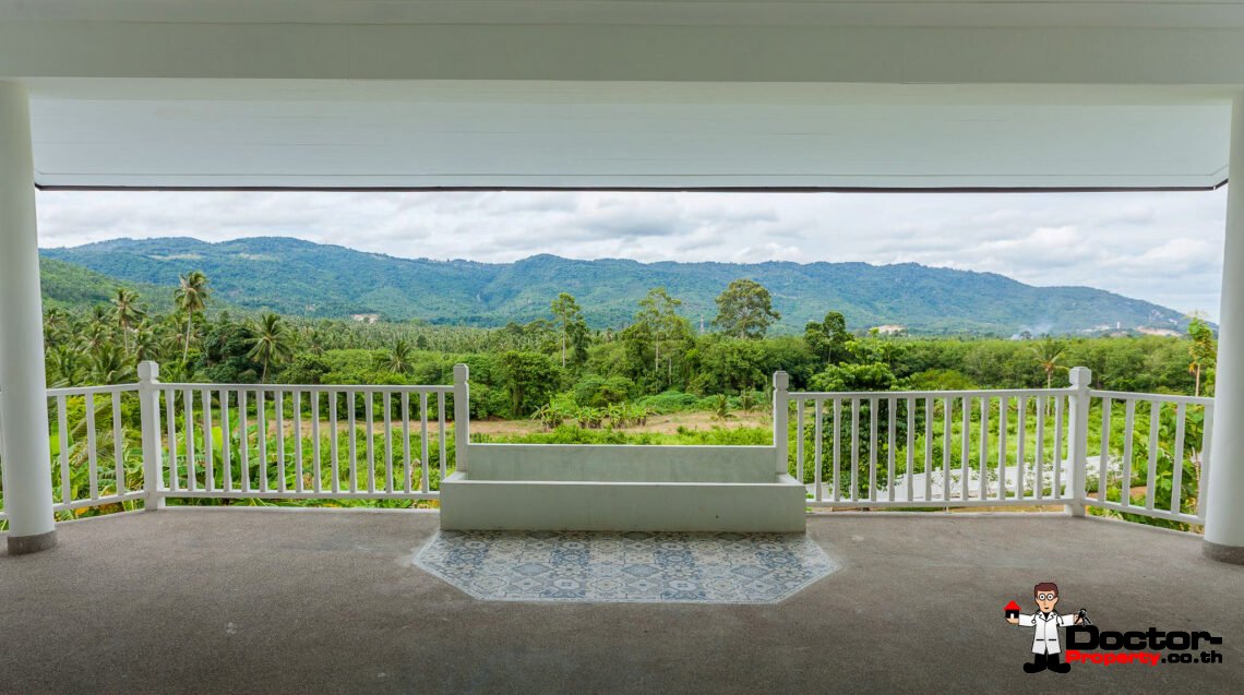 Ein riesiges Anwesen wartet bei diesem Angebot auf Sie. Dieses luxuriöse 4 Schlafzimmer Haus hat eine Grundstücksfläche von 4.388 m2 und befindet in der Gegend um Na Muang, im Süden von Samui gelegen. Diese Gegend ist berühmt durch seine populären Wasserfälle und seiner unberührten Natur. Von hier aus benötigen Sie ungefähr 20 – 30 Minuten bis nach Chaweng und bis zum Flughafen. Bis zur Stadt Lamai sind es jedoch nur 10 Minuten Fahrzeit. Einkaufsmöglichkeiten, einheimische Restaurants und Bars befinden sich in einem Umfeld von 5 Minuten.