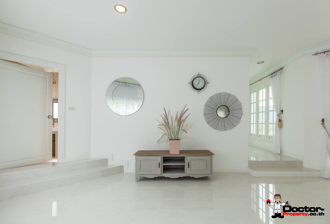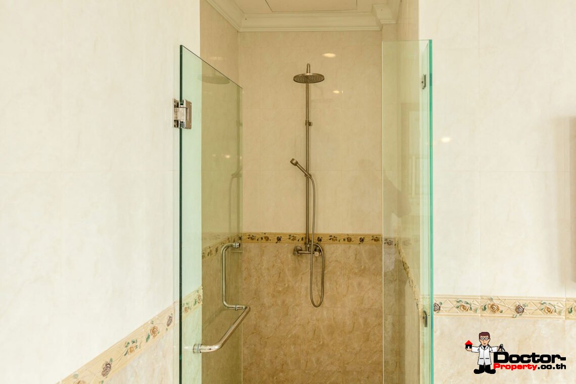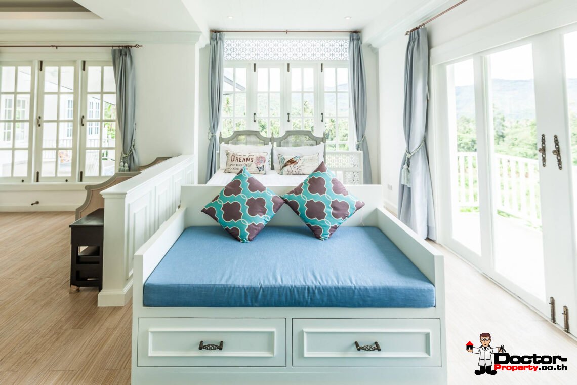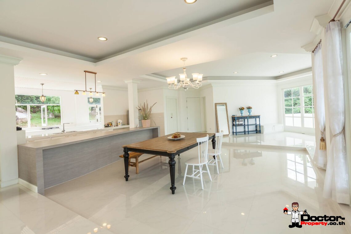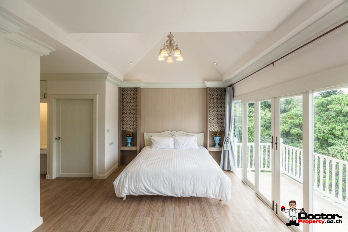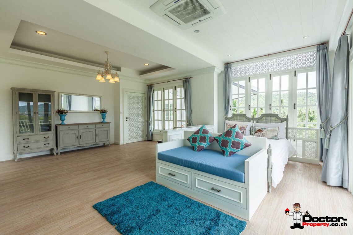 Ein riesiges Anwesen wartet bei diesem Angebot auf Sie. Dieses luxuriöse 4 Schlafzimmer Haus hat eine Grundstücksfläche von 4.388 m2 und befindet in der Gegend um Na Muang, im Süden von Samui gelegen. Diese Gegend ist berühmt durch seine populären Wasserfälle und seiner unberührten Natur. Von hier aus benötigen Sie ungefähr 20 – 30 Minuten bis nach Chaweng und bis zum Flughafen. Bis zur Stadt Lamai sind es jedoch nur 10 Minuten Fahrzeit. Einkaufsmöglichkeiten, einheimische Restaurants und Bars befinden sich in einem Umfeld von 5 Minuten.