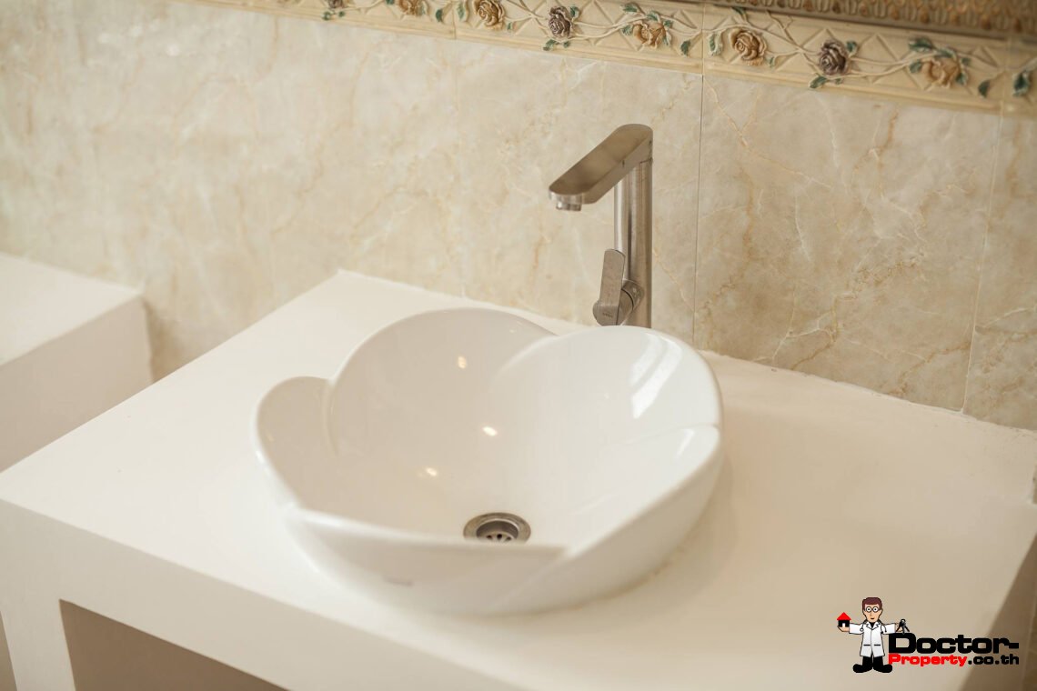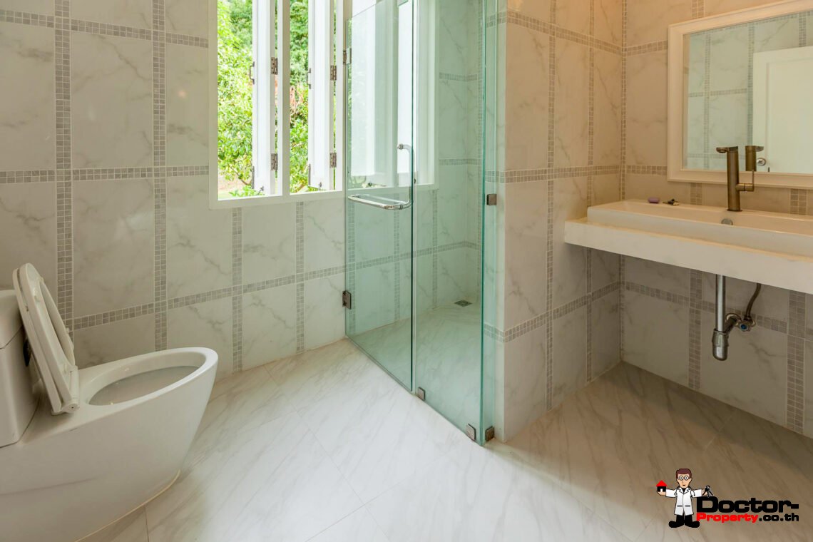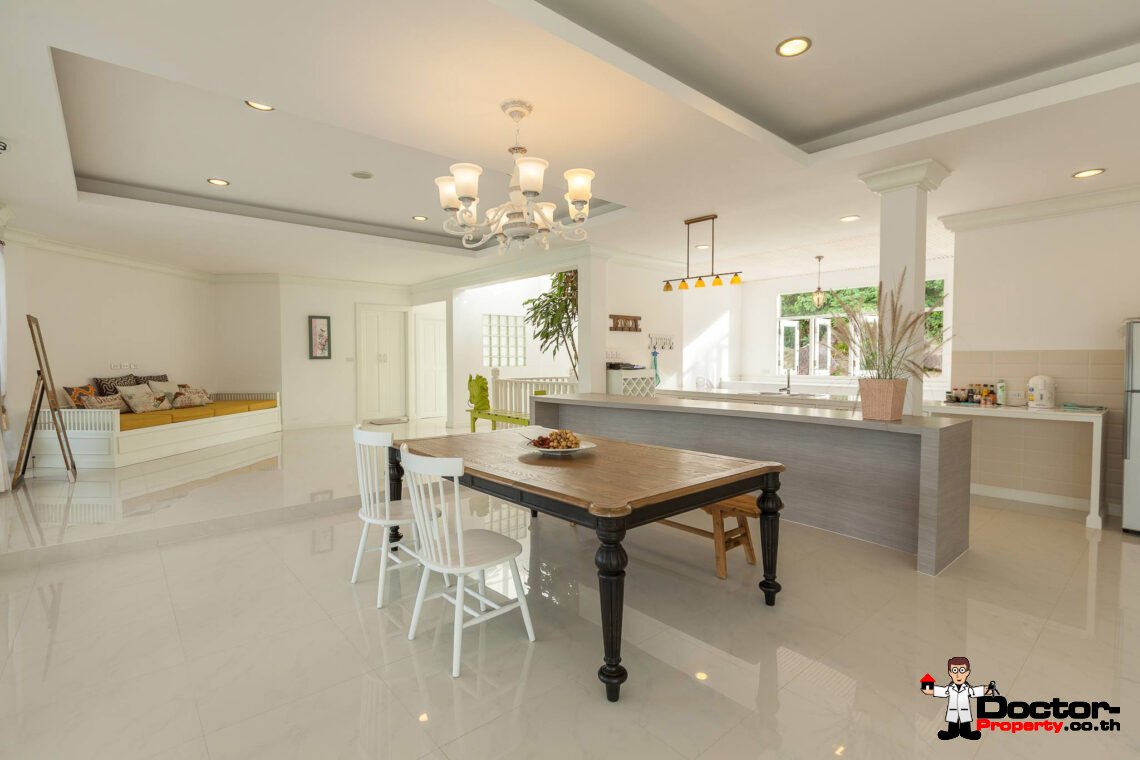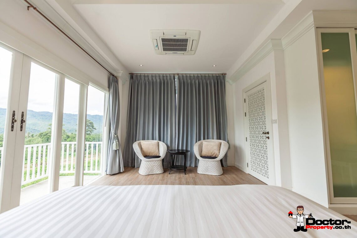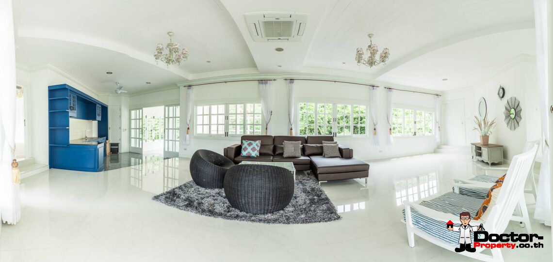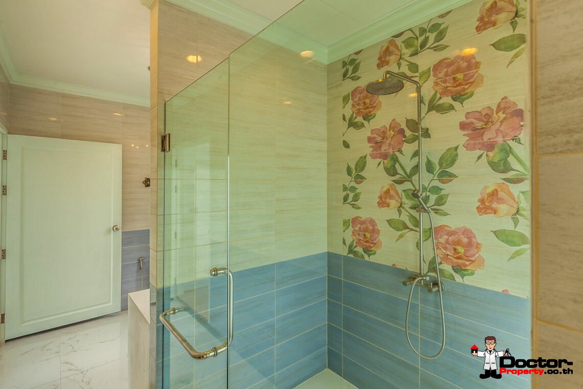 Ein riesiges Anwesen wartet bei diesem Angebot auf Sie. Dieses luxuriöse 4 Schlafzimmer Haus hat eine Grundstücksfläche von 4.388 m2 und befindet in der Gegend um Na Muang, im Süden von Samui gelegen. Diese Gegend ist berühmt durch seine populären Wasserfälle und seiner unberührten Natur. Von hier aus benötigen Sie ungefähr 20 – 30 Minuten bis nach Chaweng und bis zum Flughafen. Bis zur Stadt Lamai sind es jedoch nur 10 Minuten Fahrzeit. Einkaufsmöglichkeiten, einheimische Restaurants und Bars befinden sich in einem Umfeld von 5 Minuten.
