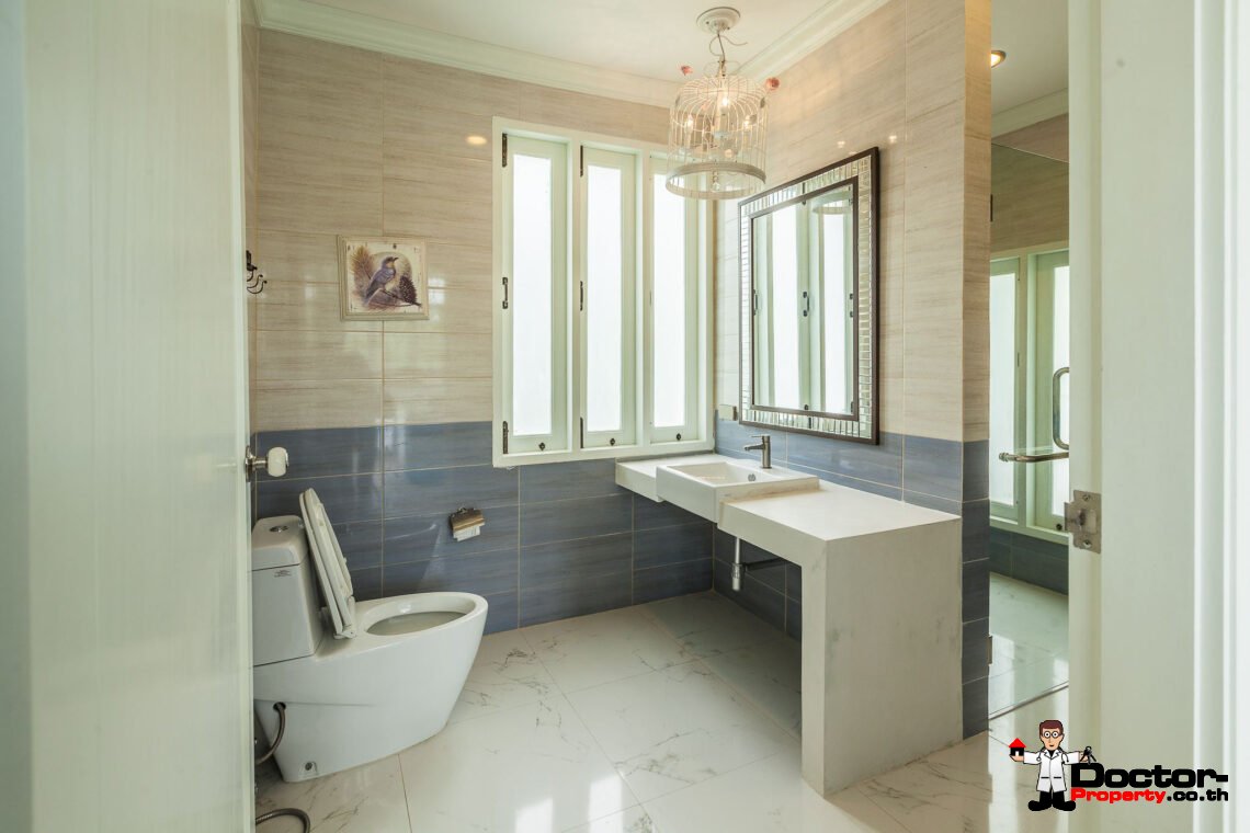 Diese Haus hat insgesamt 4 Schlafzimmer, 6 Bäder, eine Küche und einem offenen Wohnbereich und ist sehr hochwertig ausgestattet. Auf der Terrasse finden Sie den Pool und einen Jacuzzi. Auf dem großen Grundstück haben Sie die Möglichkeit weitere Häuser zu bauen und sie gegebenenfalls zu vermieten. Alle Möglichkeiten stehen Ihnen zur Verfügung.