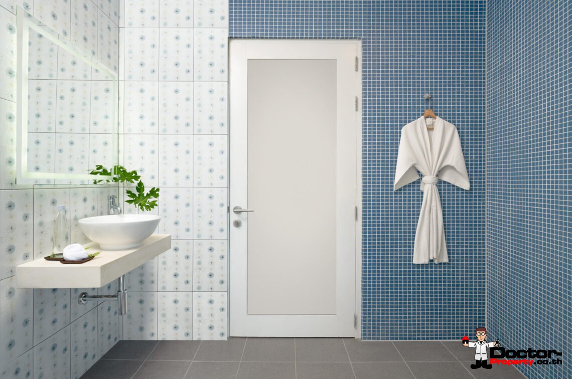 Zeitgenössische, moderne Eleganz mit klassischen Designakzenten beschreibt am besten das Ambiente des Anwesens, wenn Sie der glatten Sandsteintreppe folgen, die vom Eingang und dem privaten Carport zur voll klimatisierten Wohnzimmerebene führt. Diese elegante Villa mit sechs Schlafzimmern ist lichtdurchflutet und verfügt über große und elegante Glasschiebetüren im großzügigen Wohnbereich mit einem umlaufenden Balkon in voller Länge mit Blick zu allen Seiten. Die hellen Schlafzimmer, alle mit eigenem Bad, verteilen sich auf zwei Ebenen und bieten viel Privatsphäre. Freistehende Badewannen und Open-Air-Badezimmer für die drei Schlafzimmer im Obergeschoss unterstreichen das perfekte tropische Flair dieser Immobilie.
