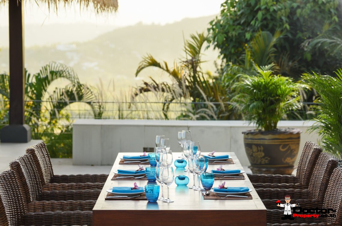 Eingebettet in einen üppig grünen Hügel im Norden von Chaweng / Koh Samui bietet diese luxuriöse, gut ausgestattete Villa einen atemberaubenden Blick auf den Strand von Chaweng und den Golf von Thailand. Dieses perfekte Familienhaus ist nur 5 Autominuten vom internationalen Flughafen Koh Samui entfernt. Es zeichnet sich durch seine perfekte Lage aus, die Ihnen absolute Privatsphäre und Entspannung bietet und dennoch nahe genug ist, um das pulsierende Nachtleben von Chaweng, oder das berühmte Fisherman’s Village zu genießen.