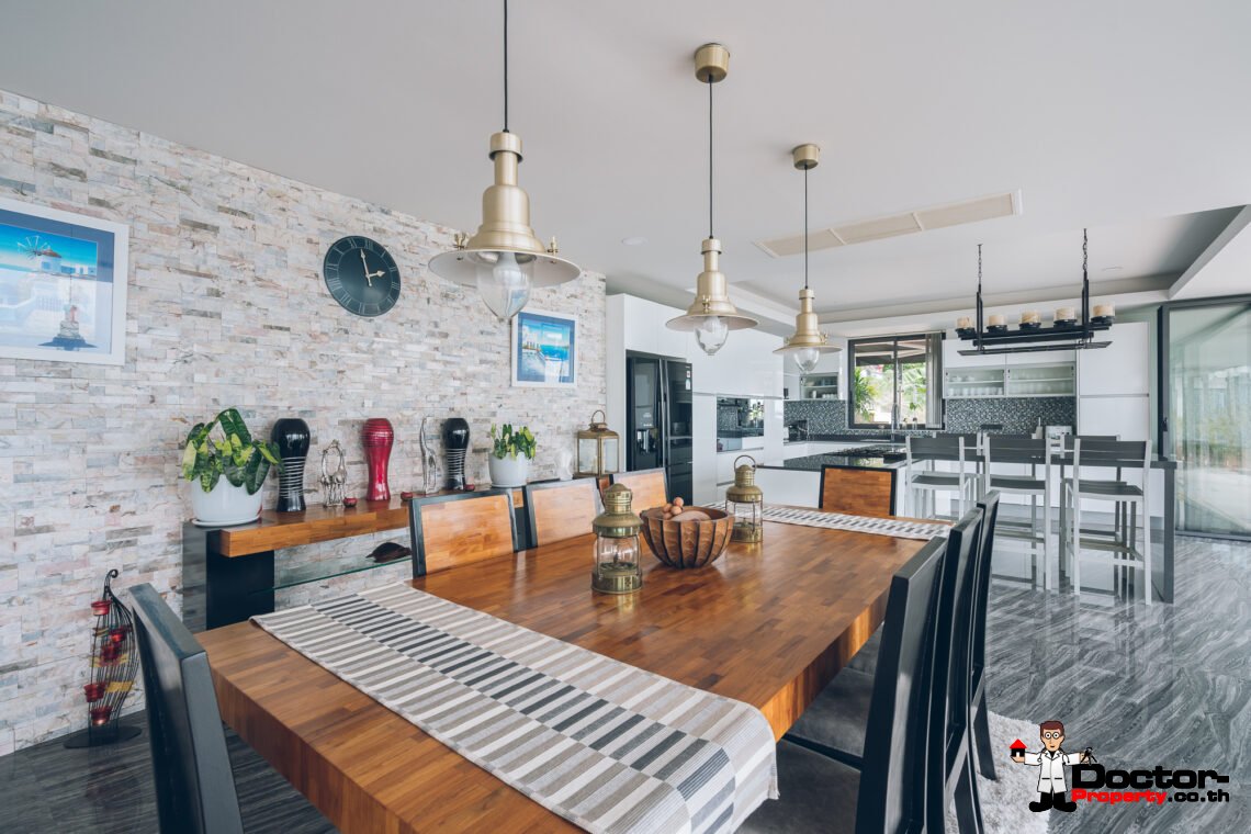 Das auffälligste Merkmal dieser prächtigen Villa ist natürlich der panoramische und unverbaubare Meerblick, der sofort beeindruckt, wenn Sie den Empfangsraum für den überdachten Parkplatz betreten. Dieser Bereich dient als Leseraum und ist ideal, um Besucher zu begrüßen und sich bei einem Kaffee und einem Buch zu entspannen und ist vollständig von der Hauptvilla getrennt. Gehen Sie nach unten ins Erdgeschoss, vorbei an den schmiedeeisernen Toren, und erreichen Sie den Unterhaltungsbereich im Freien mit voll ausgestatteter Bar und überdachtem Sala-Sitzbereich. Die Villa wurde mit besonderem Augenmerk auf die Unterhaltung der Gäste gestaltet und macht diese Villa ideal für gesellschaftliche Veranstaltungen und Hochzeitsfeiern.