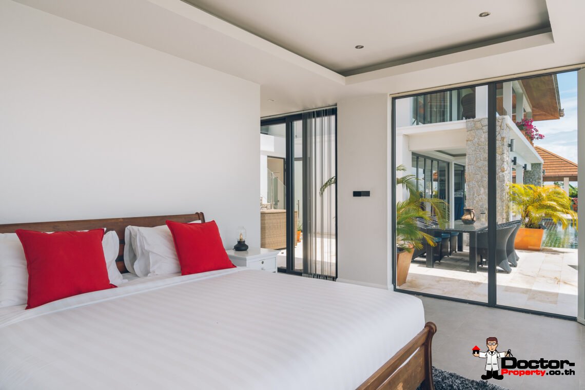 Eines der beeindruckendsten Grundstücke von Samui wird jetzt vom Eigentümer zum Verkauf angeboten. Dies ist eine wirklich bemerkenswerte Privatresidenz, ein exklusives verwaltetes Anwesen an der Nordküste von Samui. Die Lage ist sehr begehrt wegen ihrer Bequemlichkeit und Nähe zum Stadtzentrum von Samui (Chaweng kann in 20 Minuten erreicht werden), sowie zum weißen Sandstrand von Bang Por, der in 5 Minuten erreicht werden kann. In der Nähe gibt es viele Strandbars, Cafés und Restaurants, die keine Wünsche offen lassen, und zahlreiche Läden für den täglichen Bedarf sind in der Nähe.