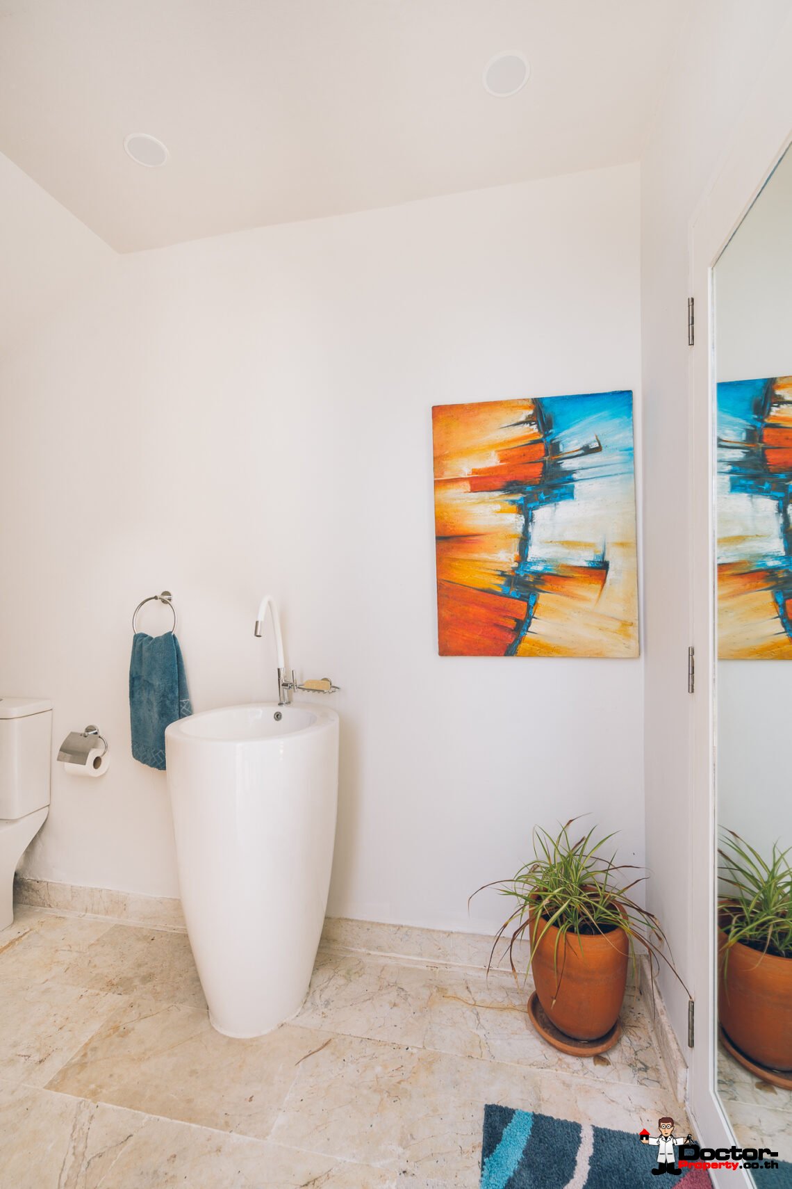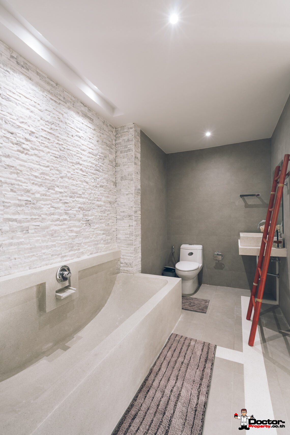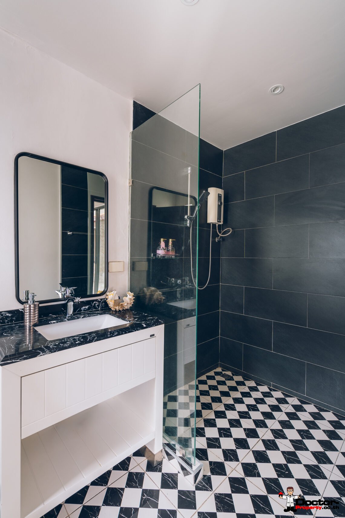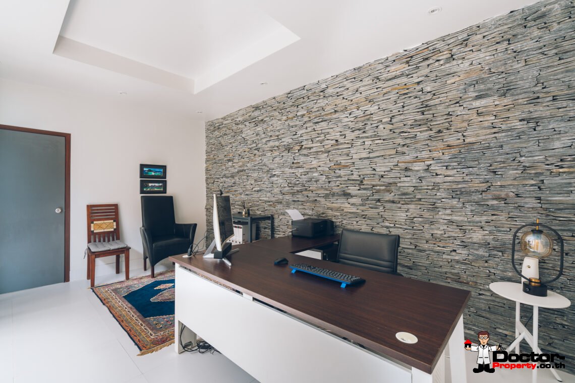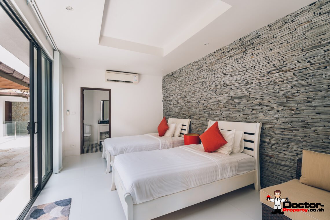 Eines der beeindruckendsten Grundstücke von Samui wird jetzt vom Eigentümer zum Verkauf angeboten. Dies ist eine wirklich bemerkenswerte Privatresidenz, ein exklusives verwaltetes Anwesen an der Nordküste von Samui. Die Lage ist sehr begehrt wegen ihrer Bequemlichkeit und Nähe zum Stadtzentrum von Samui (Chaweng kann in 20 Minuten erreicht werden), sowie zum weißen Sandstrand von Bang Por, der in 5 Minuten erreicht werden kann. In der Nähe gibt es viele Strandbars, Cafés und Restaurants, die keine Wünsche offen lassen, und zahlreiche Läden für den täglichen Bedarf sind in der Nähe.