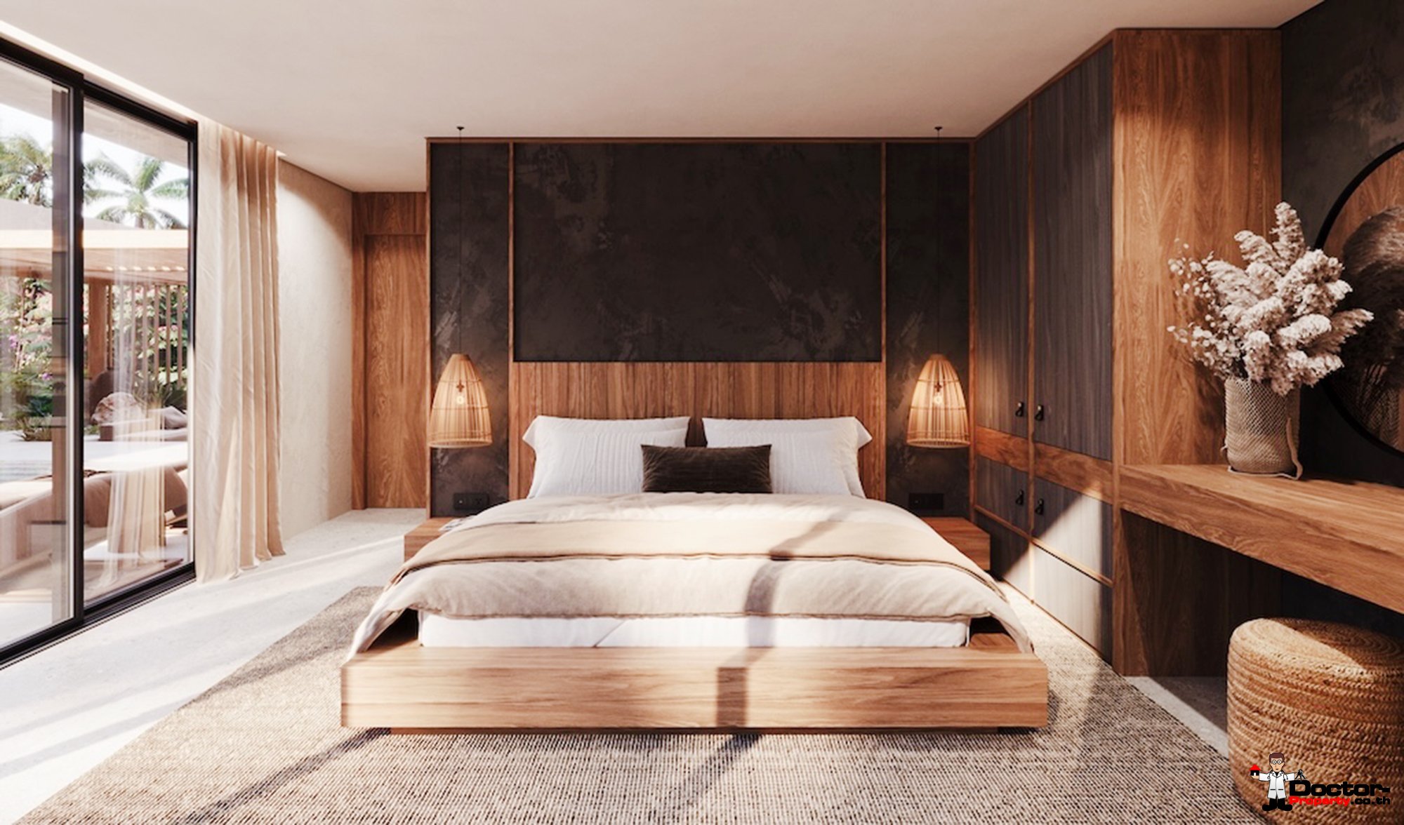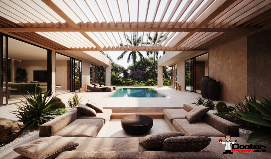 Die Villen wurden durchdacht geplant, um Raum, Licht und Komfort optimal zu nutzen. Großzügige Glasfronten lassen viel Tageslicht in die Wohnbereiche, während offene Grundrisse fließende Übergänge zwischen Innen- und Außenbereich ermöglichen. Die geschmackvolle Inneneinrichtung vereint moderne Eleganz mit dezenten tropischen Akzenten. Hochwertige Materialien, maßgefertigte Oberflächen und sorgfältig ausgewählte Möbel machen jedes Haus sowohl praktisch als auch optisch ansprechend.