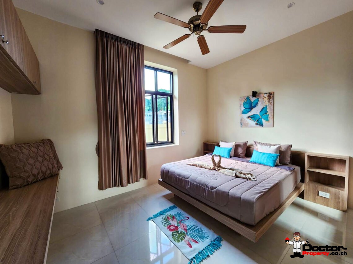 Wir stellen Ihnen eine atemberaubende private Villa mit 3 Schlafzimmern in Chaweng, Koh Samui, vor. Dieses außergewöhnliche Anwesen befindet sich in idealer Lage in einer der begehrtesten Gegenden der Insel und ist damit eine ausgezeichnete Wahl sowohl für anspruchsvolle Investoren, die Mieteinnahmen erzielen möchten, als auch für diejenigen, die in den dynamischen Lebensstil von Chaweng eintauchen möchten. Die Villa präsentiert ein zeitgenössisches Design, das elegante, moderne Ästhetik meisterhaft mit höchstem Komfort verbindet.