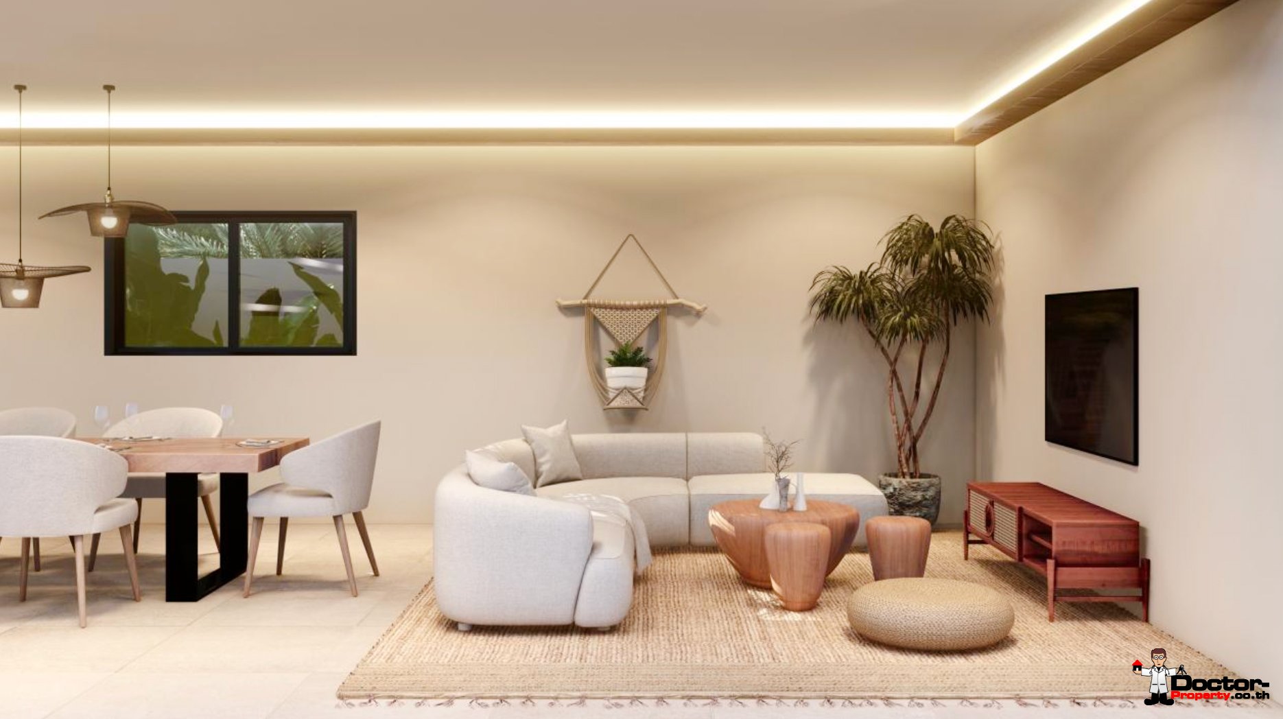 Die großzügig geschnittenen Schlafzimmer verfügen über Badezimmer en suite und werden durch eine stilvolle Küche und einen Wohnbereich ergänzt, die das Herzstück des Hauses bilden. Die Möglichkeit, vier Schlafzimmer zu konfigurieren, erlaubt es Eigentümern, die Immobilie an ihre individuellen Bedürfnisse anzupassen – ob Familienleben im Vordergrund steht oder die Vermietung optimiert werden soll. Die Villen werden unmöbliert verkauft; optionale Möbel und voll ausgestattete Küchenpakete sind erhältlich, um einen sofortigen Einzug nach Fertigstellung zu gewährleisten.