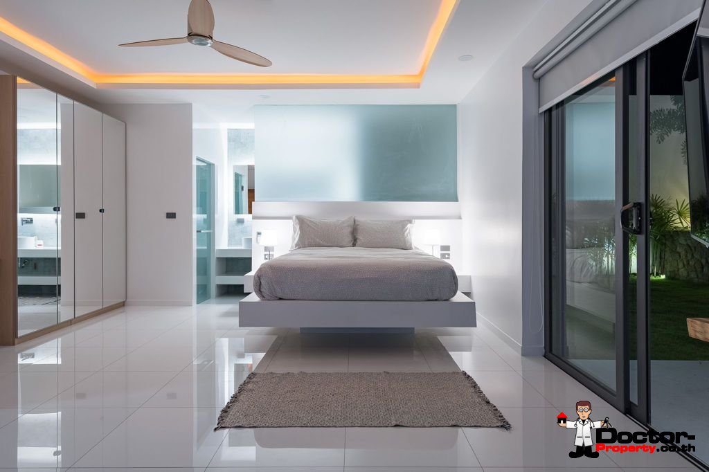 Erbaut von einem erfahrenen und produktiven Entwickler, zeigt die Immobilie eine zuverlässige Bauweise, hochwertige Materialien und erstklassige Verarbeitungen. Auf einem großzügigen 750 qm großen Chanote-Grundstück gelegen, ist die Villa vollständig für Privatsphäre und Sicherheit umschlossen. Sie verfügt über eine geräumige 420 qm große bebaute Fläche, einschließlich 210 qm Wohnfläche und einer großen 45 qm privaten Terrasse. Der weitläufige Landschaftsgarten wird durch einen atemberaubenden Swimmingpool ergänzt, der mit türkisfarbenen balinesischen Steinfliesen verziert ist, einem BBQ-Sala am Pool und reichlich Außenbereich zur Entspannung und Unterhaltung.