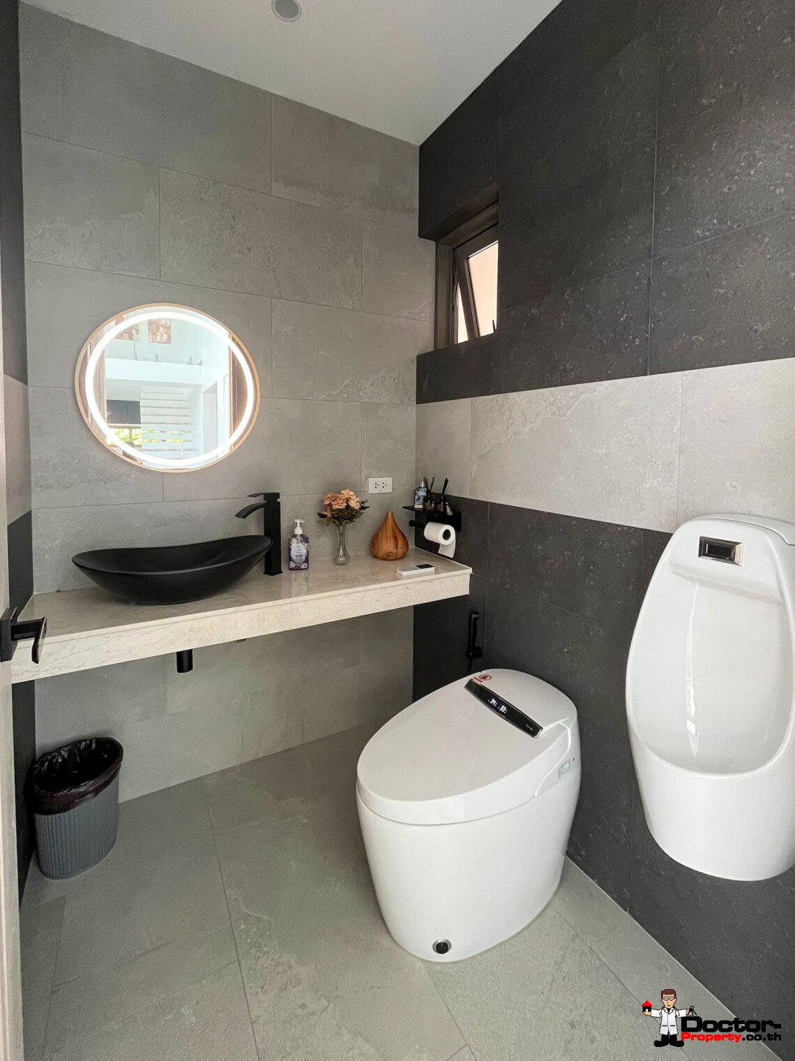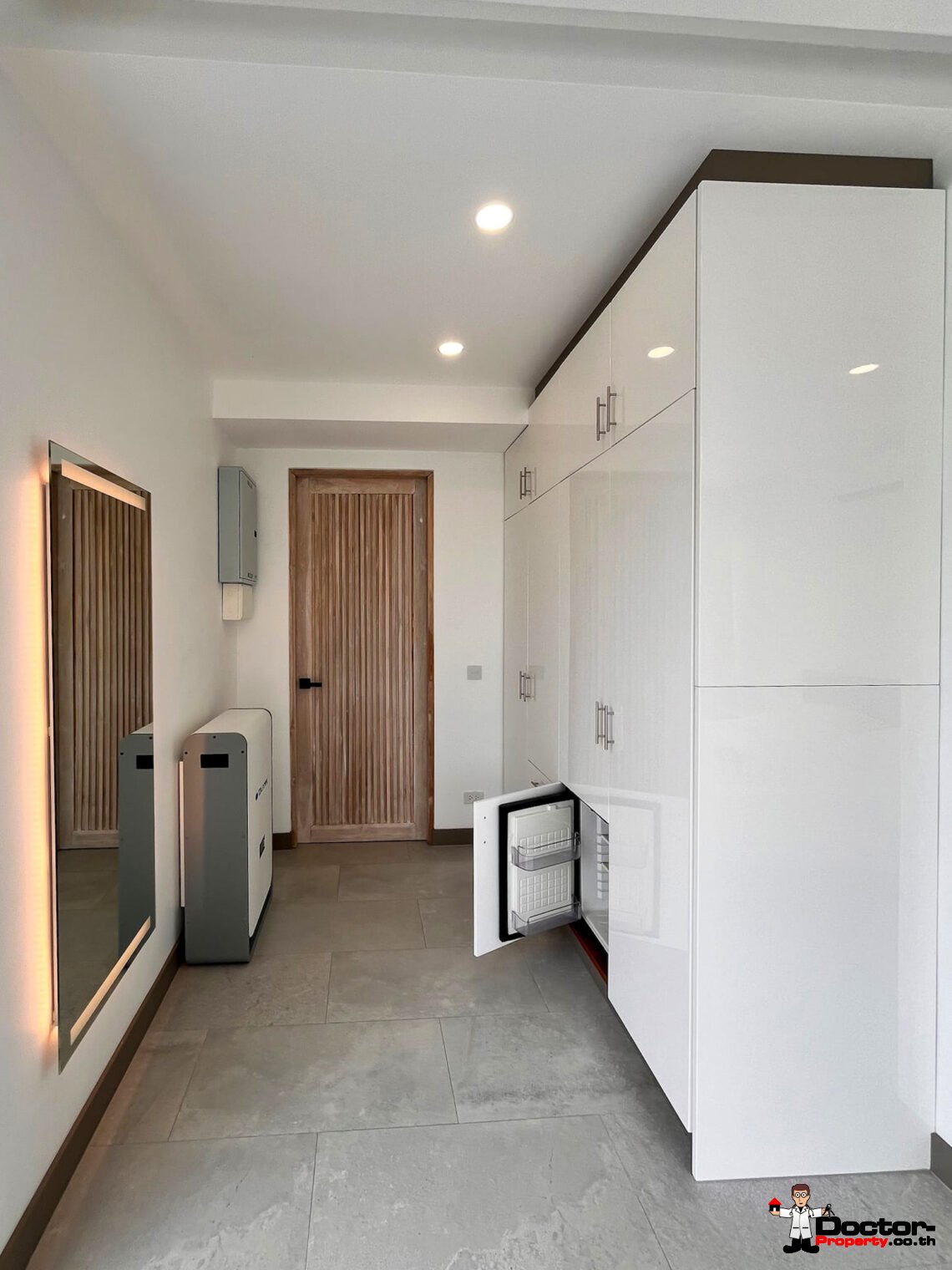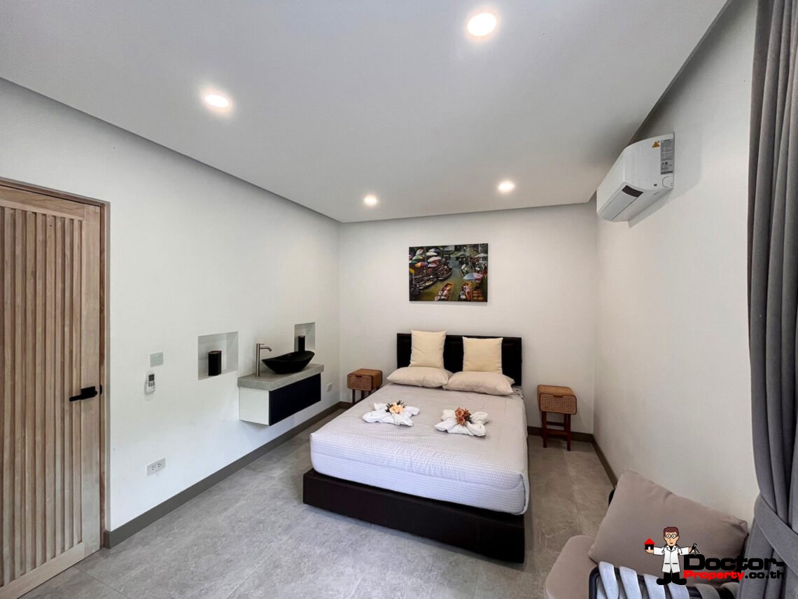 Zusammenfassend lässt sich sagen, dass diese exquisite Poolvilla mit 3 Schlafzimmern in Maenam, Koh Samui, eine seltene Gelegenheit bietet, ein luxuriöses, voll möbliertes Anwesen mit spektakulärem Panoramablick auf das Meer zu erwerben. Die Villa steht auf einem großzügigen 730 m² großen Grundstück und bietet 250 m² elegant gestalteten Wohnraum, der moderne Ästhetik mit Funktionalität verbindet. Jedes der drei Schlafzimmer verfügt über ein eigenes Badezimmer, wobei die Master-Suite direkten Zugang zum Pool und einen atemberaubenden Meerblick bietet. Diese neu gebaute Villa stellt eine außergewöhnliche Investitionsmöglichkeit in einer der begehrtesten Lagen Thailands dar. Mit ihrer erstklassigen Lage, dem weitläufigen Grundstück und dem modernen Design eignet sich die Villa perfekt sowohl für kurzfristige Ferienvermietungen als auch für langfristige Kapitalsteigerungen.