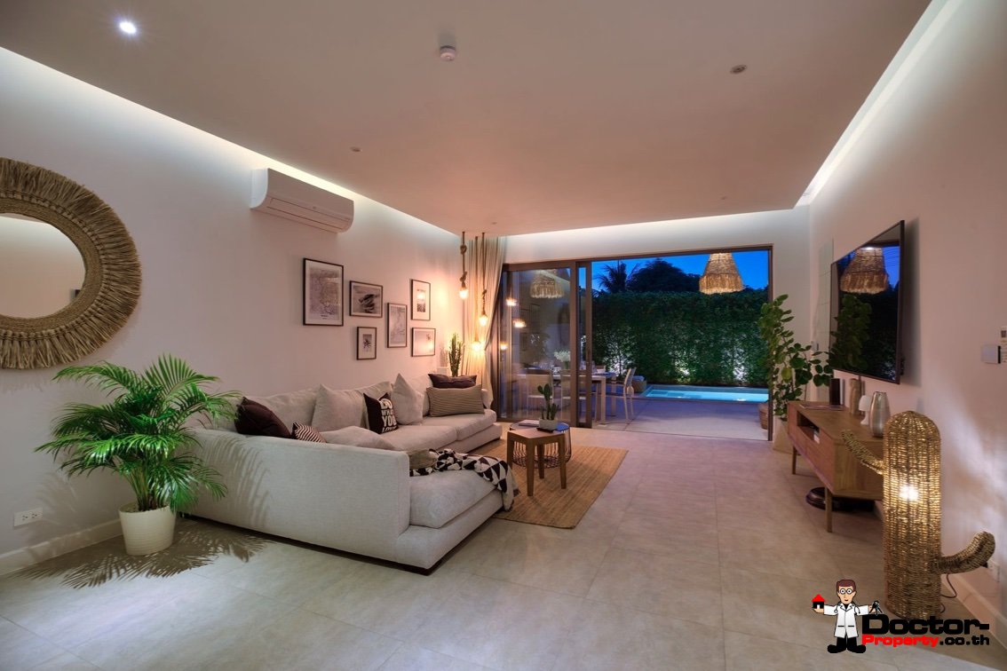 Das neue Angebot von Doctor-Property befindet sich in zentraler Lage in Bangrak / Bophut. Die neu fertiggestellte (Dezember 2019) einstöckige, moderne Poolvilla mit 3 Schlafzimmern ist wunderschön eingerichtet und mit allem westlichen Komfort ausgestattet. Direkt in der bezaubernden Gegend von Bangrak, nur wenige Minuten vom Strand, vom Fisherman´s Village, dem Zentrum von Chaweng und den berühmtesten Sehenswürdigkeiten der Insel entfernt. Die Bucht von Bangrak bietet eine vielseitige Auswahl an Strandclubs, Restaurants und Fähranlegestellen nach Koh Phangan.
