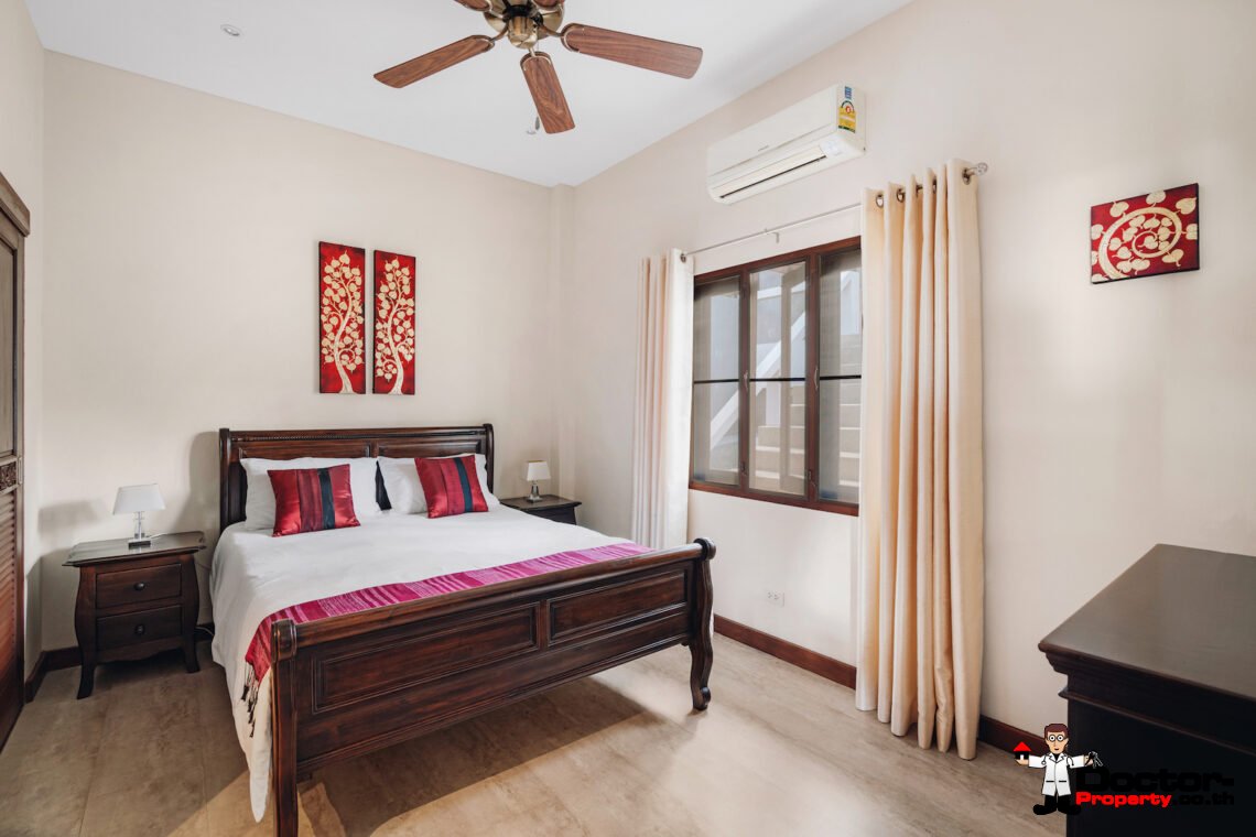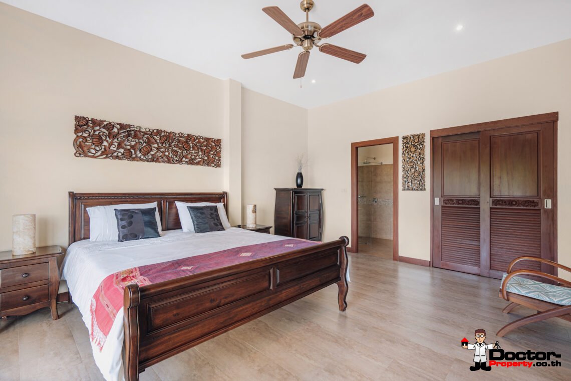 Dieses Anwesen bietet absolute Privatsphäre und ist für jeden geeignet, der eine eher natürliche Umgebung und die Abgeschiedenheit der touristischen Gegenden bevorzugt. Von hier aus erreichen Sie mit dem Auto eine Reihe ruhiger Strände in nur 10 Minuten. Es gibt viele malerische kleine Dörfer in der Nähe, mit Restaurants für Einheimische und gleichgesinnte Auswanderer. Die nächsten größeren Städte von hier aus sind Lamai – bekannt als Samuis lebhafter zweiter Ferienort nach Chaweng. Ebenso Nathon, wo Samuis Hauptfährhafen liegt, ist in kurzer Zeit erreichbar. Beide Städte befinden sind in ca. 20 Minuten in entgegengesetzten Richtungen.