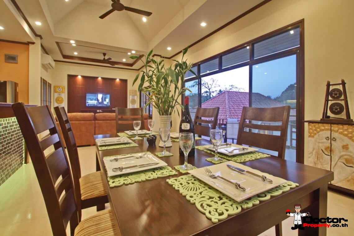 Diese Villa verfügt über insgesamt 3 Schlafzimmer und 3 Bäder, ein Wohnzimmer und eine Küche. Im Inneren befinden sich ein wunderschöner großer Swimmingpool der das Zentrum des Anwesens bildet. Einen BBQ Bereich ist ebenfalls vorhanden. Die gesamte Villa überzeugt mit ihrer hohen Qualität und Schönheit und natürlich mit einer hohen Privatsphäre.