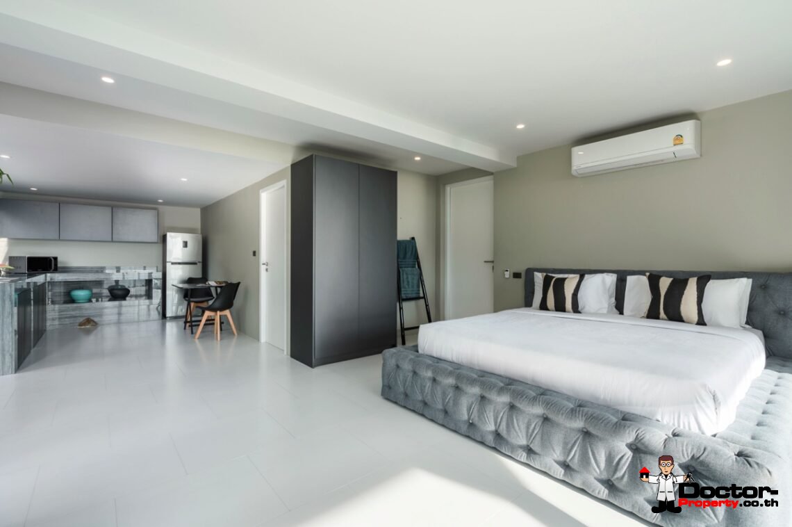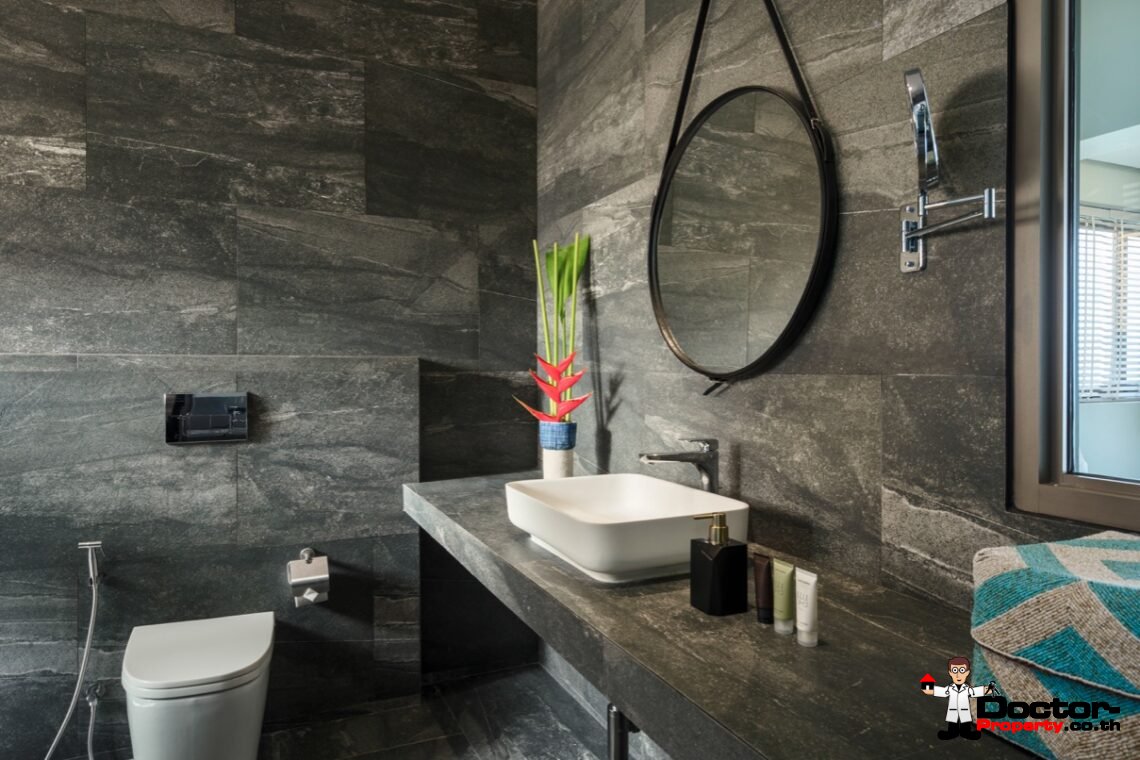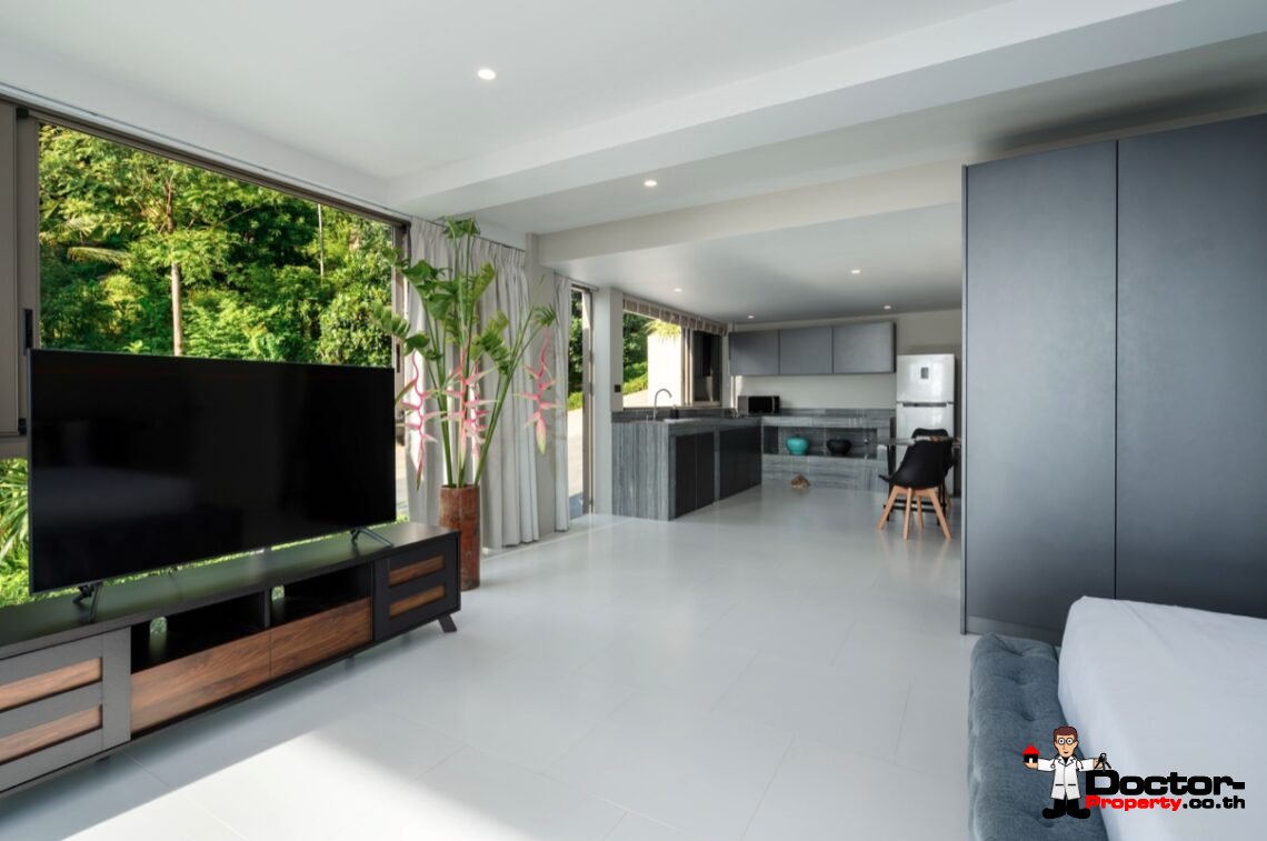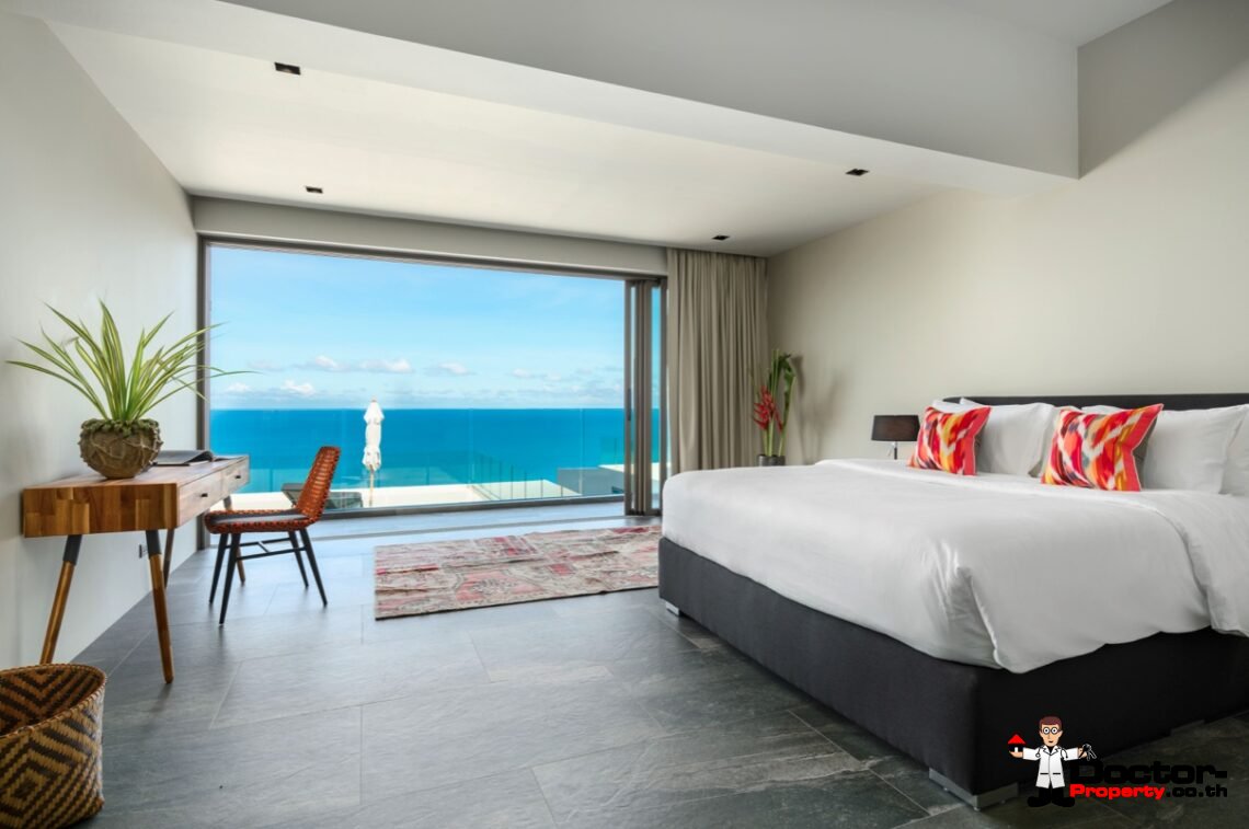 Diese traumhafte Villa besteht aus insgesamt 3 Schlafzimmer, 4 Badezimmer, einen offenen Wohn-, Ess- und Küchenbereich. Ebenfalls befindet sich ein separates Studio mit einer eigenen Küche und einem Schlafzimmer auf der Parkebene. Die Villa ist komplett hochwertig möbliert und klimatisiert. Der fantastische Pool und die Sonnenterrasse kann über die Wohn- und Küchenbereich erreicht werden. Der Infinity Pool selbst ist 12 x 3 Meter groß und bietet ein atemberaubenden Panoramablick auf das Meer. Im hinteren Teil befindet sich noch eine kleine Terrasse mit Bergblick. Ebenfalls haben Sie die Möglichkeit auf der Dachterrasse eine weitere Entspannungsoase für sich einzurichten.