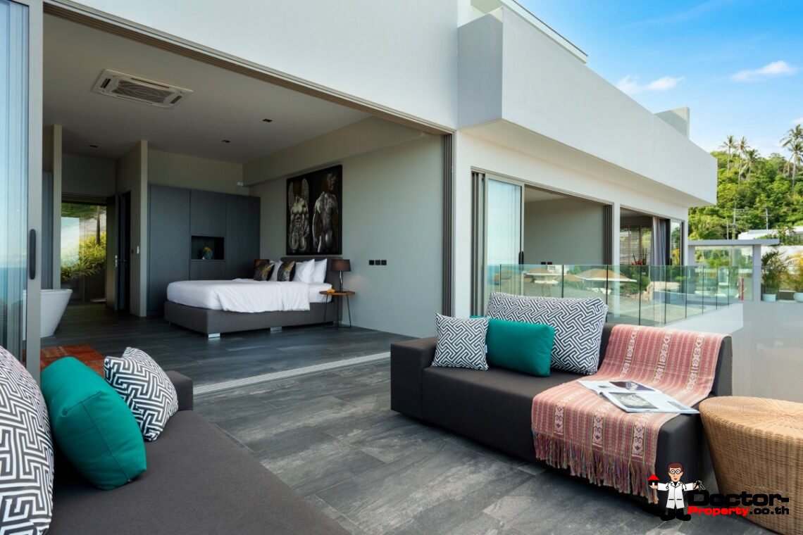 Diese traumhafte Villa befindet sich in den Hügeln von Chaweng Noi. Nur 5 Minuten von der Hauptstraße und 10 Minuten vom Zentrum in Chaweng entfernt. Bis zum Strand von Chaweng ist es ebenfalls nur eine kurze Fahrt von 5 Minuten. Die direkte Nachbarschaft besteht aus luxuriösen Villen, alle mit einem traumhaften Blick auf das Meer. Von hier aus können Sie direkt am Horizont den Sonnenaufgang in atemberaubenden Farben erleben. Alle wichtigen Annehmlichkeiten, wie Restaurants, Bars, Banken, internationale Schulen und selbstverständlich auch eine reichhaltige Anzahl an Einkaufsmöglichkeiten befinden sich kurzer Distanz. Der Flughafen von Koh Samui ist 15 Fahrminuten sehr gut und bequem zu erreichen.