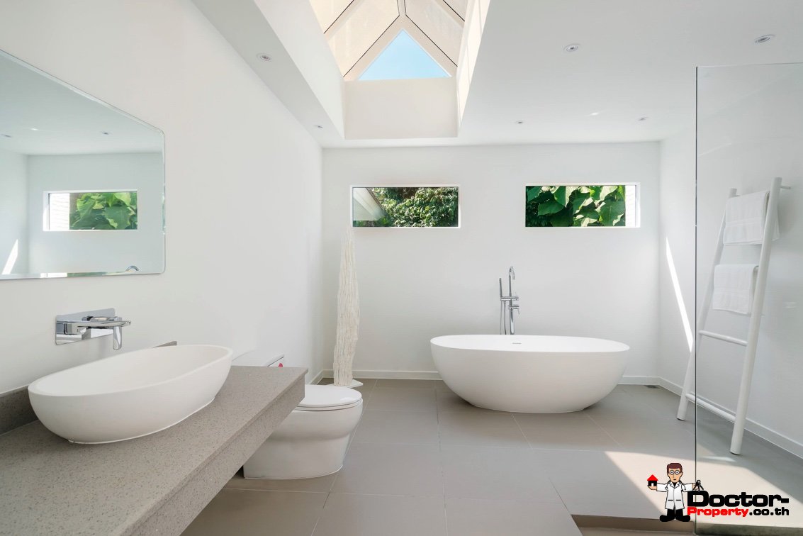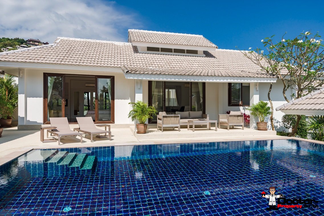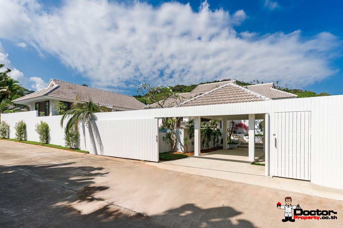 Notre nouvelle offre de Doctor-Property est située au centre de la côte est de Koh Samui. Cette villa fait partie d’un développement immobilier fermé et est située dans les collines de Bophut. Seulement 5 minutes en voiture du village des pêcheurs. Il y a actuellement 23 villas achevées avec les équipements suivants :