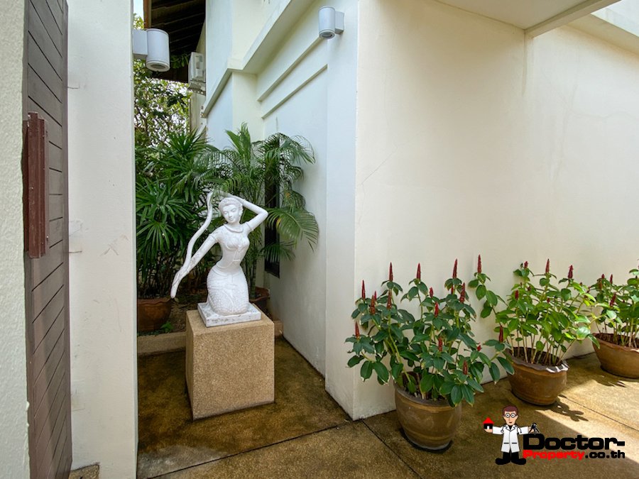 Il s’agit d’une villa de style asiatique balinais classique, élégante et intemporelle, située dans l’un des endroits les plus recherchés de Samui. Centré à Bang Rak, ce domaine privé possède son propre accès sécurisé à la plage pour les clients de l’autre côté de la route principale. De là, vous êtes à une distance très facile de tout ce dont vous avez besoin pour un séjour agréable et sans soucis ou peut-être un déménagement permanent à Samui. Fisherman’s Village est à seulement 3 minutes de route vers l’ouest, tandis que Bangrak lui-même offre une multitude d’options de restauration et de divertissement.