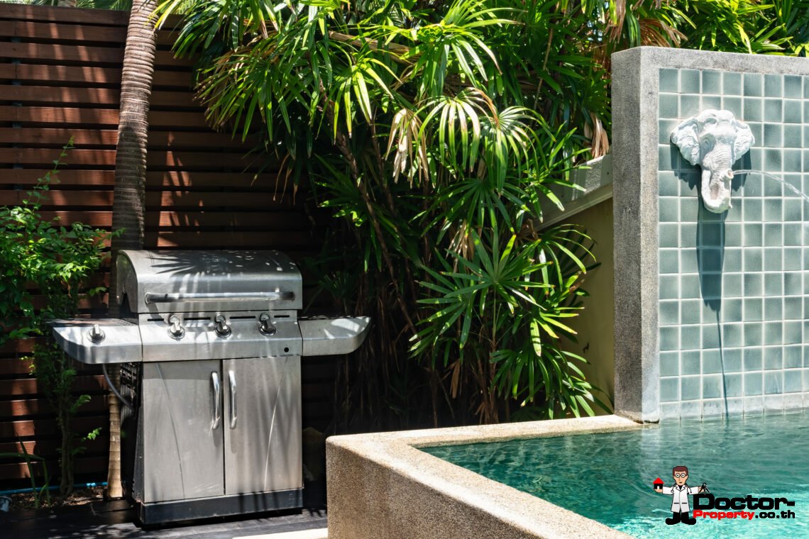 Le cœur de la villa réside dans sa vaste terrasse couverte, dotée d’un espace barbecue et d’un accès direct à la plage. Ici, vous pourrez savourer un dîner en plein air tout en profitant d’une vue panoramique sur l’océan. À l’intérieur, une cuisine occidentale entièrement équipée vous attend, ainsi que des coins salon et salle à manger confortables donnant sur les eaux tranquilles.