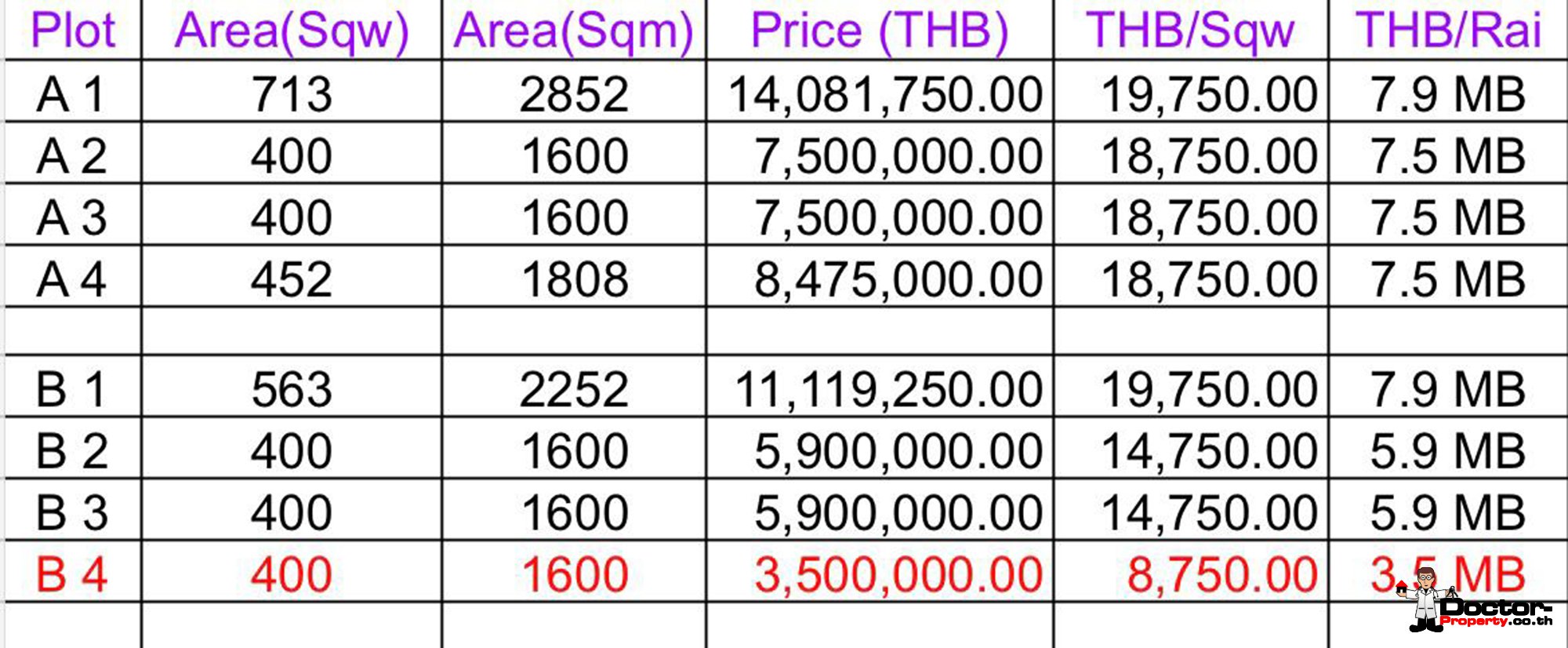 - B4 – 1 600 m² | 3 500 000 THB