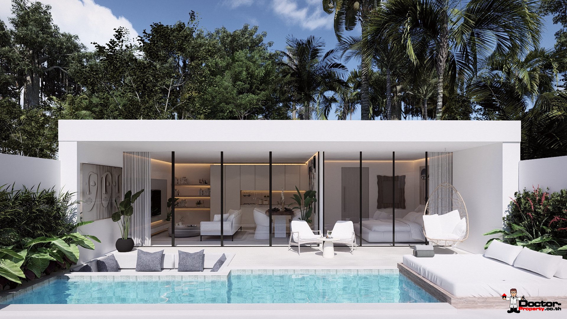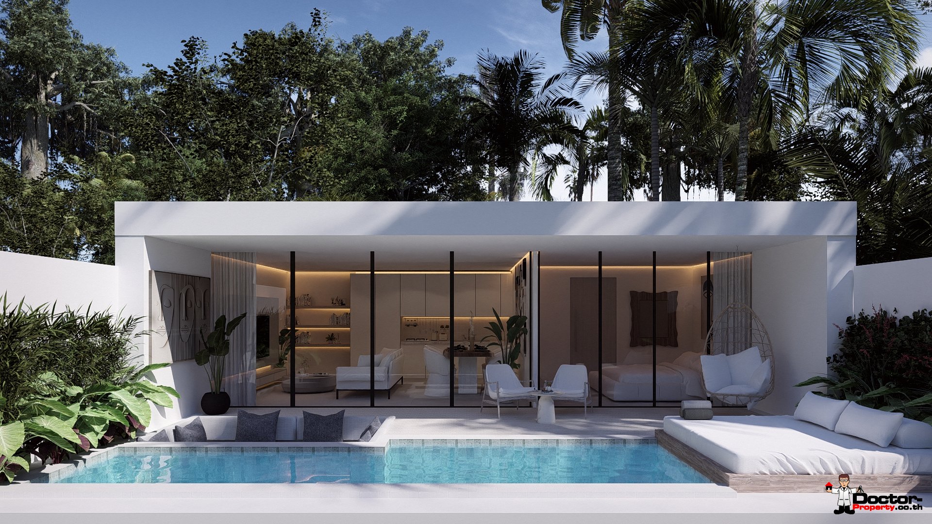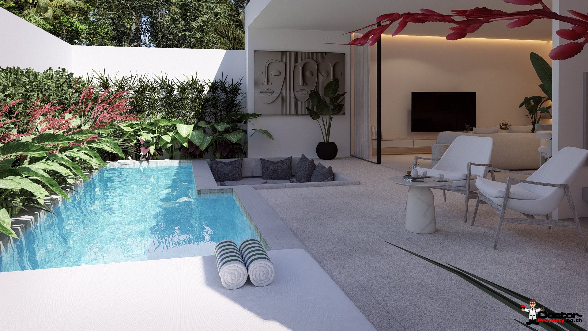 Cet ensemble de 7 villas fait partie d’un programme immobilier exclusif de 37 unités. Cette villa contemporaine d’une chambre avec piscine a été soigneusement conçue pour allier élégance moderne et style de vie tropical. D’une superficie de 68 m² sur un terrain de 81 m², la villa offre un agencement bien proportionné qui optimise confort et intimité. Le salon et la salle à manger ouverts sont lumineux et accueillants, avec de grandes baies vitrées donnant directement sur la piscine privée et la terrasse. La chambre est spacieuse et dispose d’une élégante salle de bains privative.