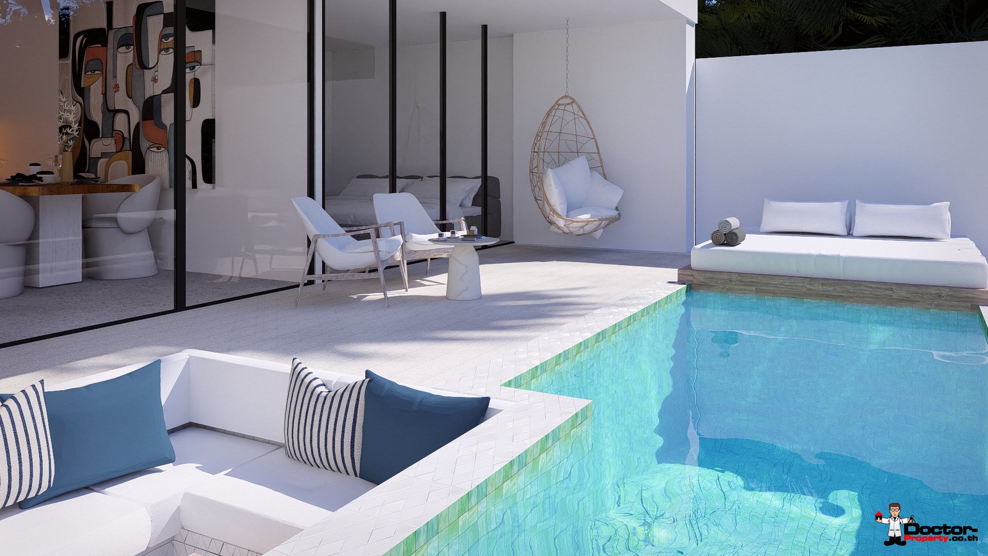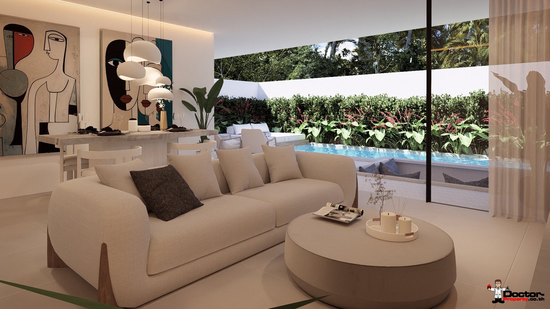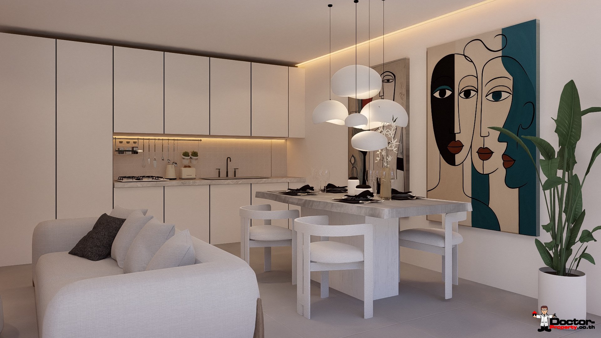 Cet ensemble de 7 villas fait partie d’un programme immobilier exclusif de 37 unités. Cette villa contemporaine d’une chambre avec piscine a été soigneusement conçue pour allier élégance moderne et style de vie tropical. D’une superficie de 68 m² sur un terrain de 81 m², la villa offre un agencement bien proportionné qui optimise confort et intimité. Le salon et la salle à manger ouverts sont lumineux et accueillants, avec de grandes baies vitrées donnant directement sur la piscine privée et la terrasse. La chambre est spacieuse et dispose d’une élégante salle de bains privative.