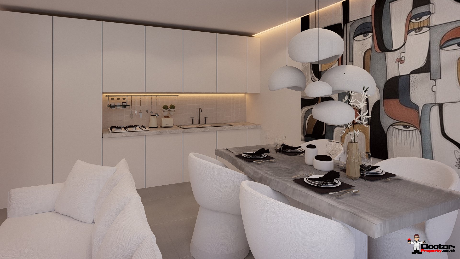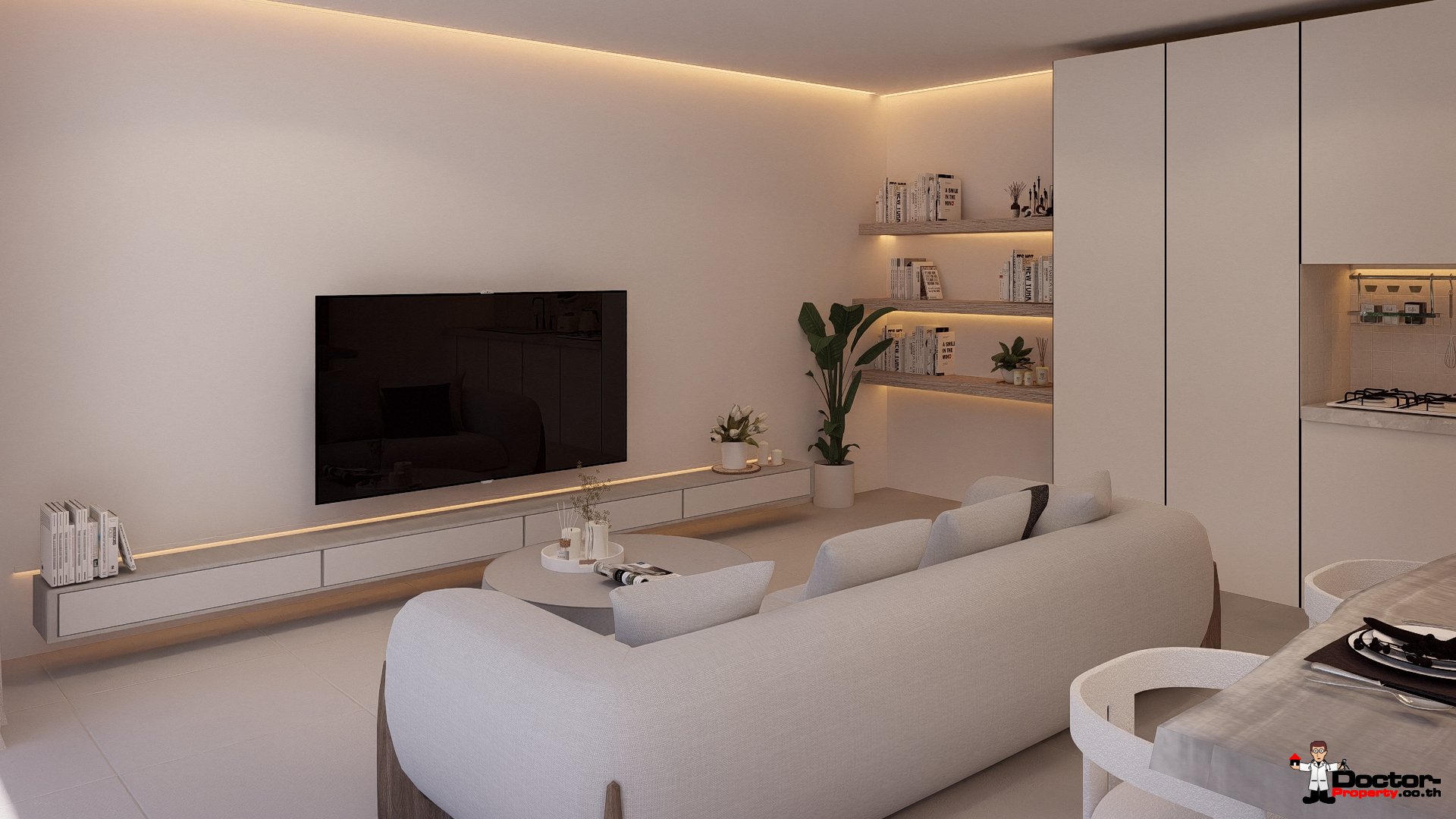 Remarque : Ce projet sur plan a une durée de construction estimée à 24 mois. Les charges mensuelles des parties communes s’élèvent à 2 025 THB (incluant l’accès aux parties communes, le parking et un service de sécurité 24h/24 et 7j/7).