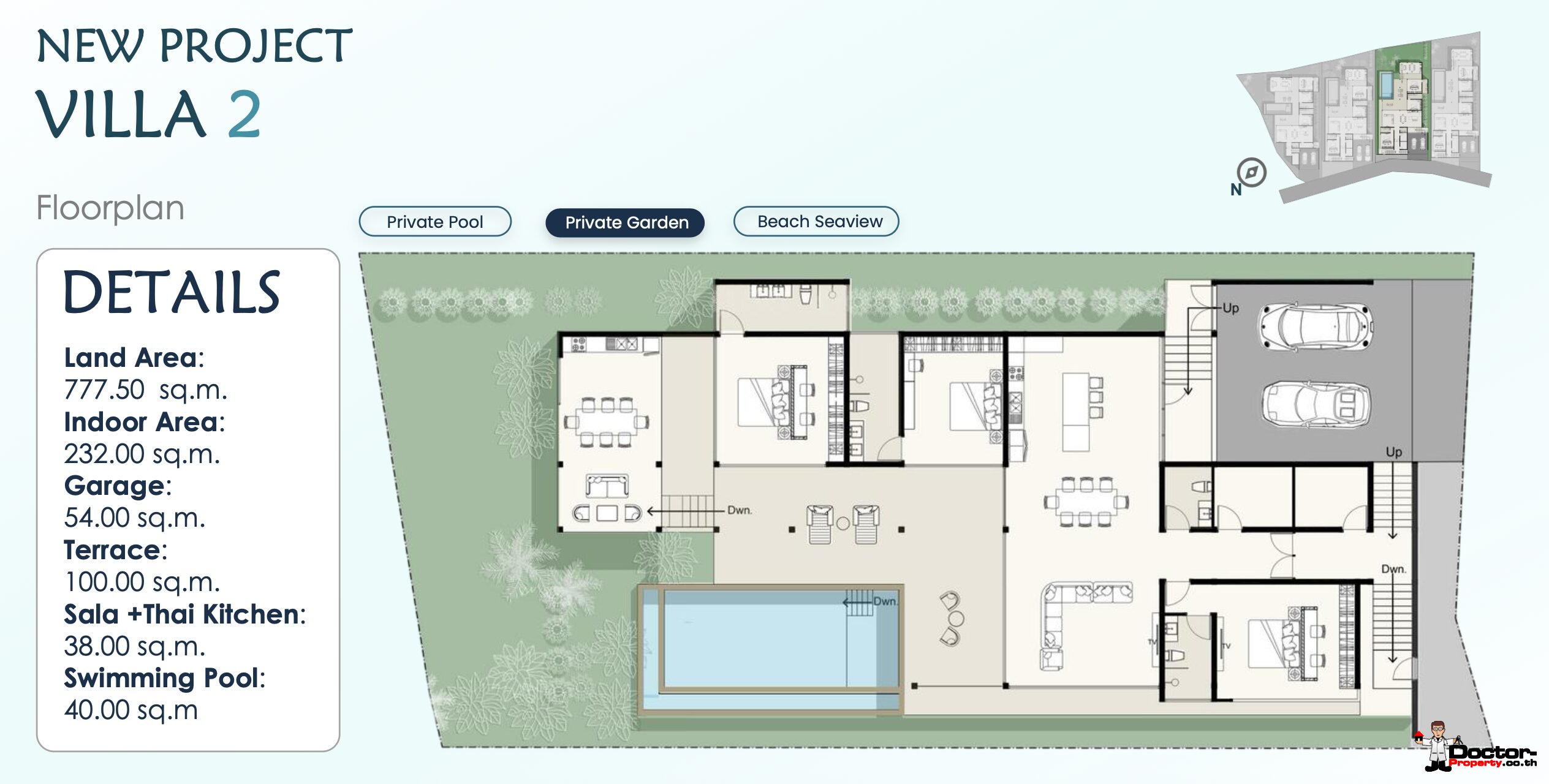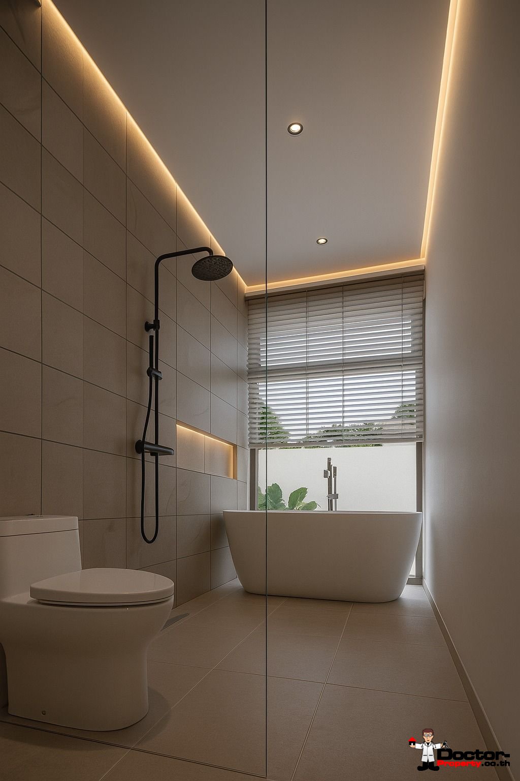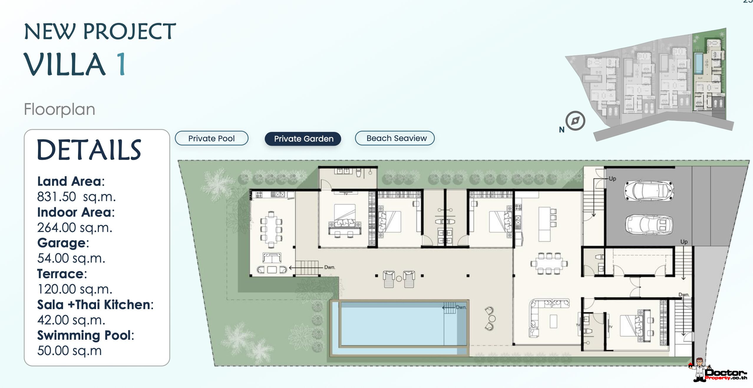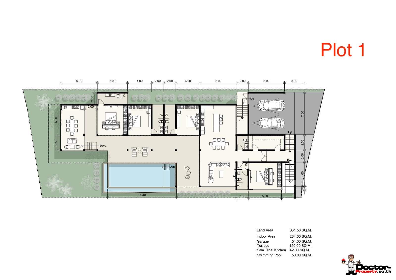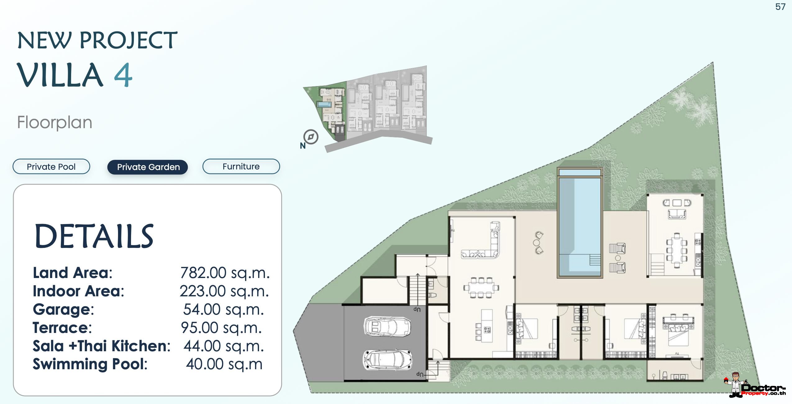 Remarque : Il s’agit d’une villa sur plan. Le délai de construction prévu est de 12 mois et le forfait mobilier coûte environ 800 000 à 1 million de bahts.