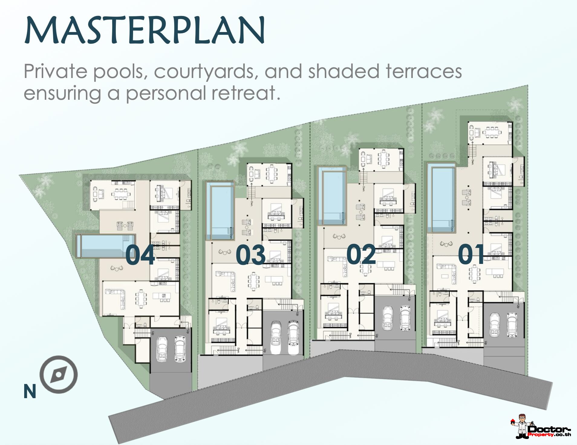 Voici une opportunité exceptionnelle d’acquérir quatre villas modernes avec piscine, comprenant 3 à 4 chambres, à Lamai, sur l’île de Koh Samui. Située sur la côte sud-est très prisée de l’île, Lamai est réputée pour ses plages immaculées, sa scène gastronomique animée et son atmosphère à la fois décontractée et raffinée. Ce quartier allie le charme de la vie insulaire traditionnelle au confort des commodités modernes, ce qui en fait l’une des destinations résidentielles et d’investissement les plus recherchées de Koh Samui. Ce programme immobilier de charme comprend quatre villas exclusives, chacune conçue avec soin pour fusionner une architecture contemporaine et la beauté naturelle des environs.
