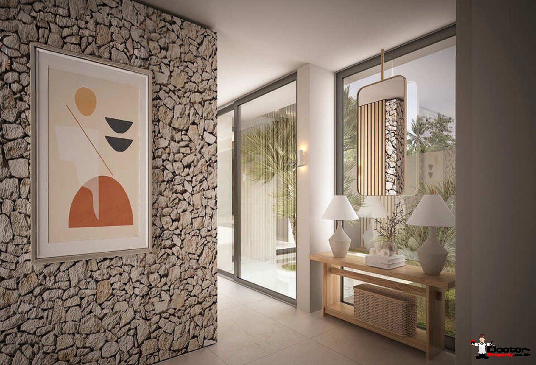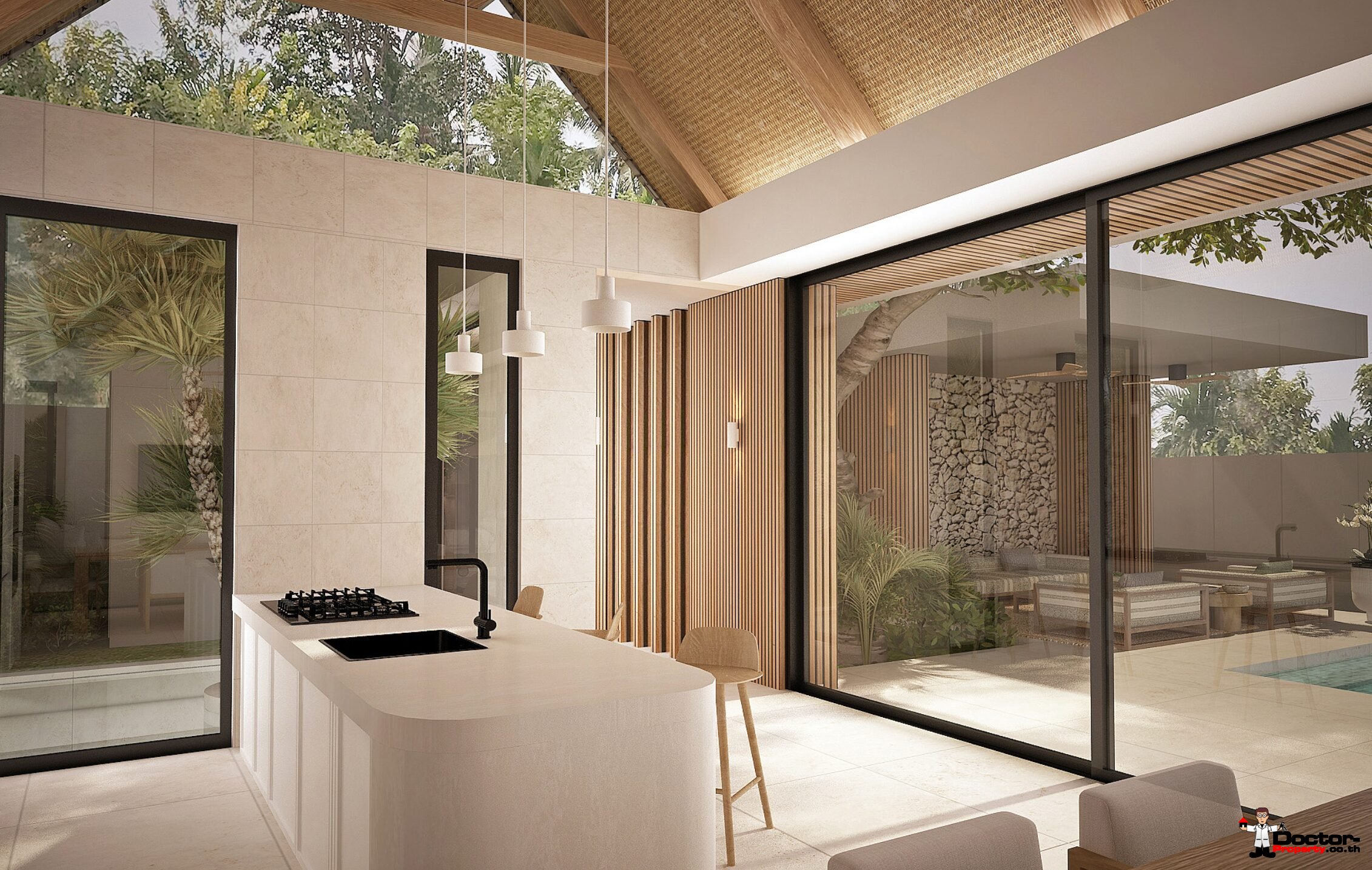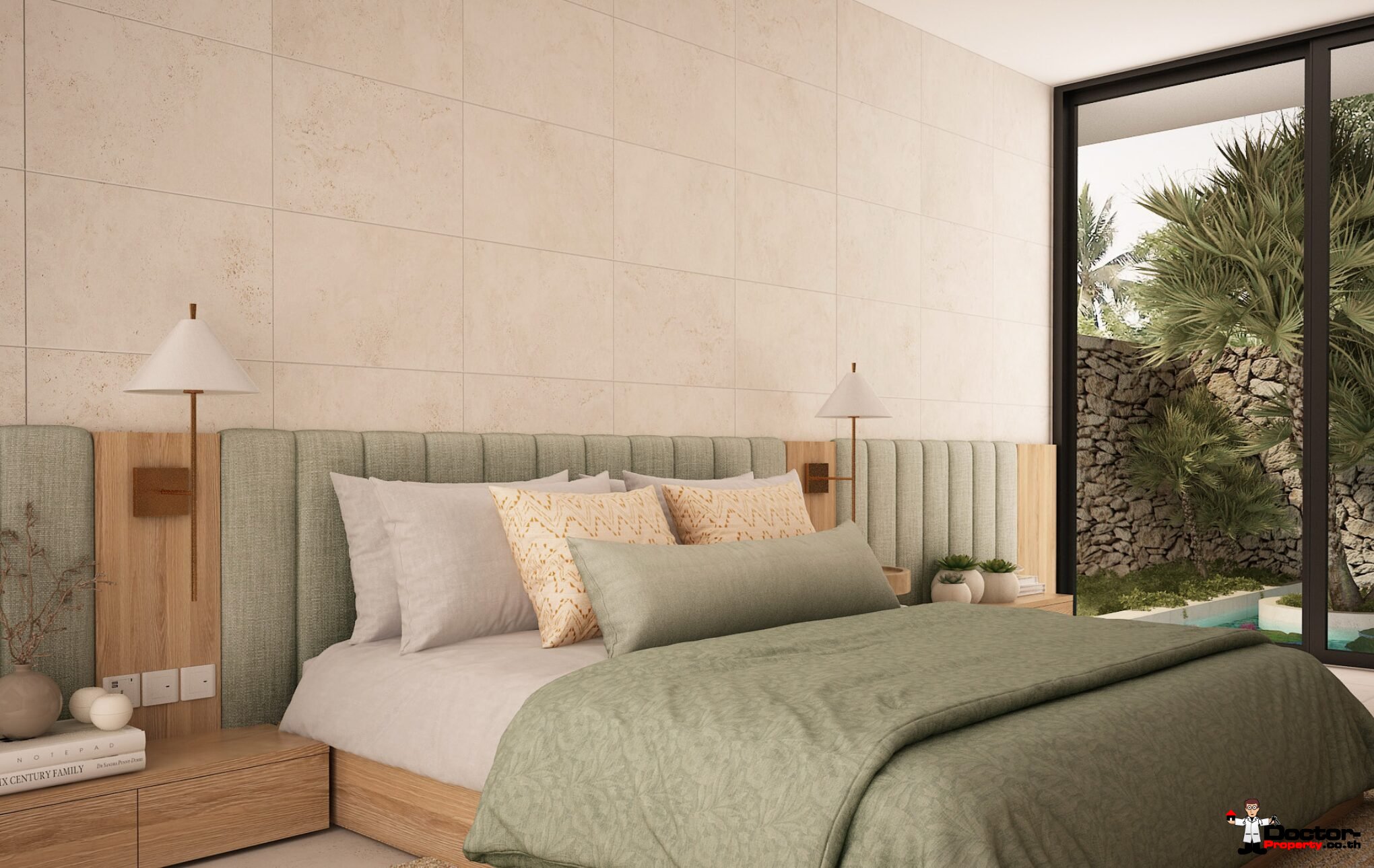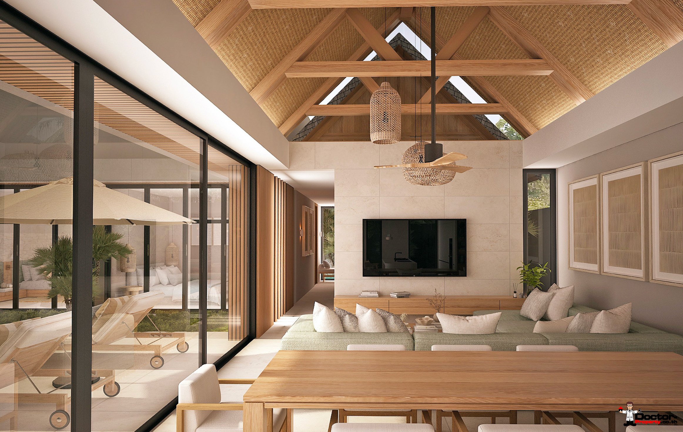 Conçue selon un concept tropical d’inspiration balinaise, la villa allie pierre naturelle, finitions en bois chaleureux et aménagements ouverts pour créer un havre de paix insulaire. L’intérieur comprend trois chambres spacieuses avec salles de bains privatives, un salon-salle à manger lumineux et une cuisine moderne entièrement équipée. De grandes portes coulissantes s’ouvrent directement sur la terrasse de la piscine privée, entourée de terrasses ensoleillées et d’une végétation luxuriante. Des salons extérieurs ombragés et une sala couverte offrent des espaces parfaits pour recevoir ou se détendre.