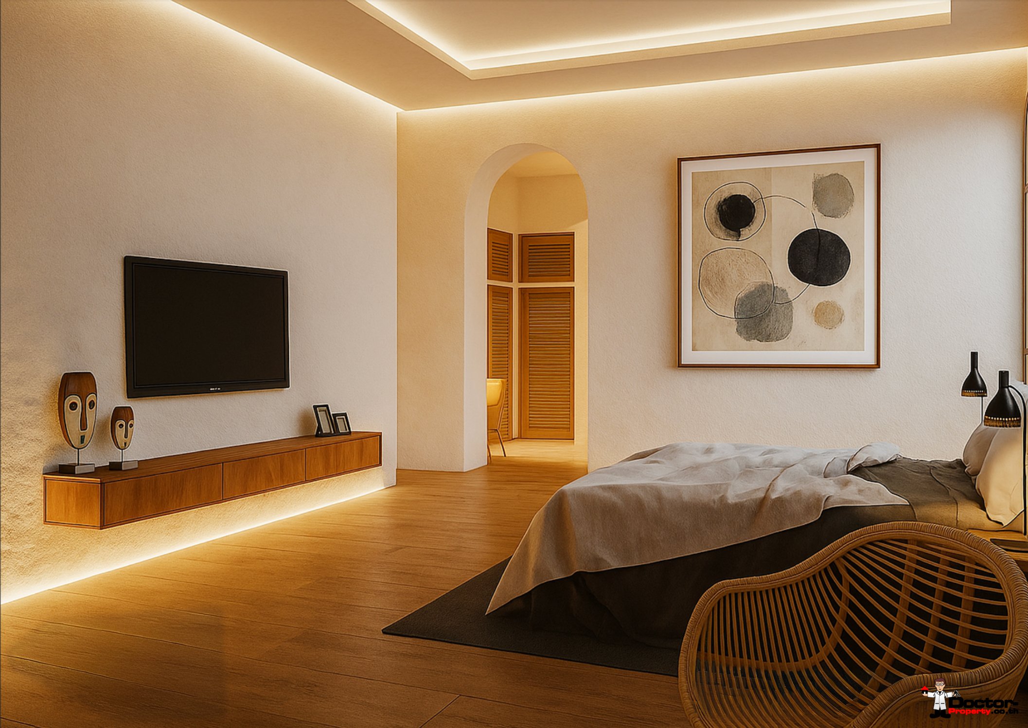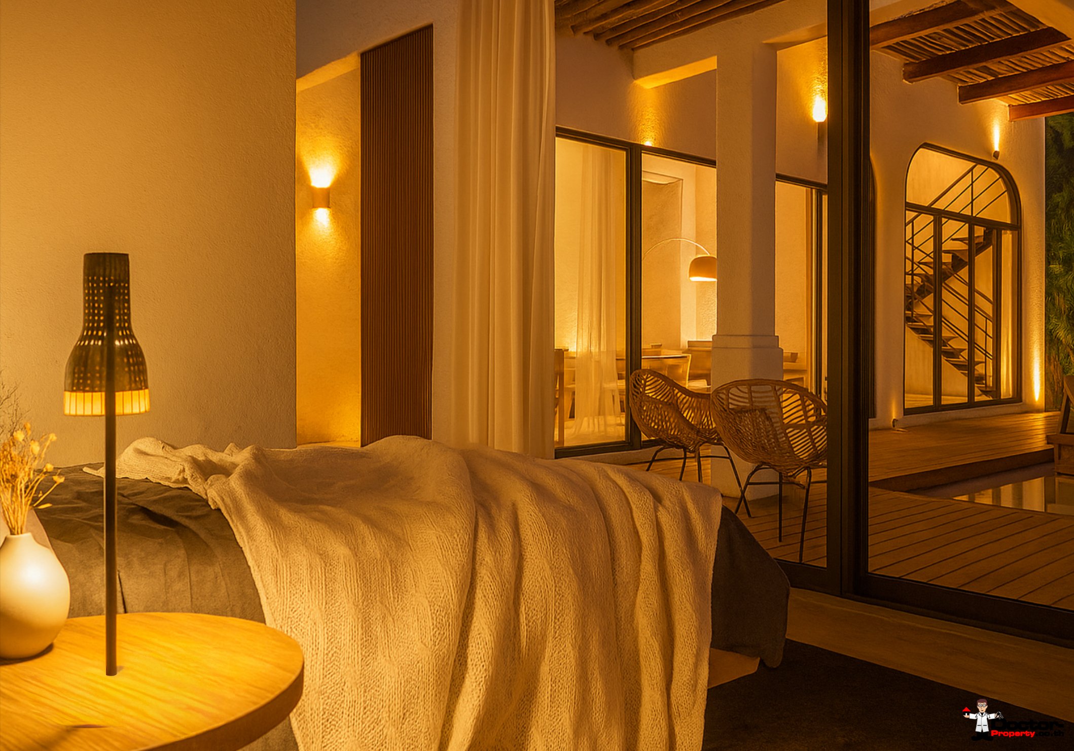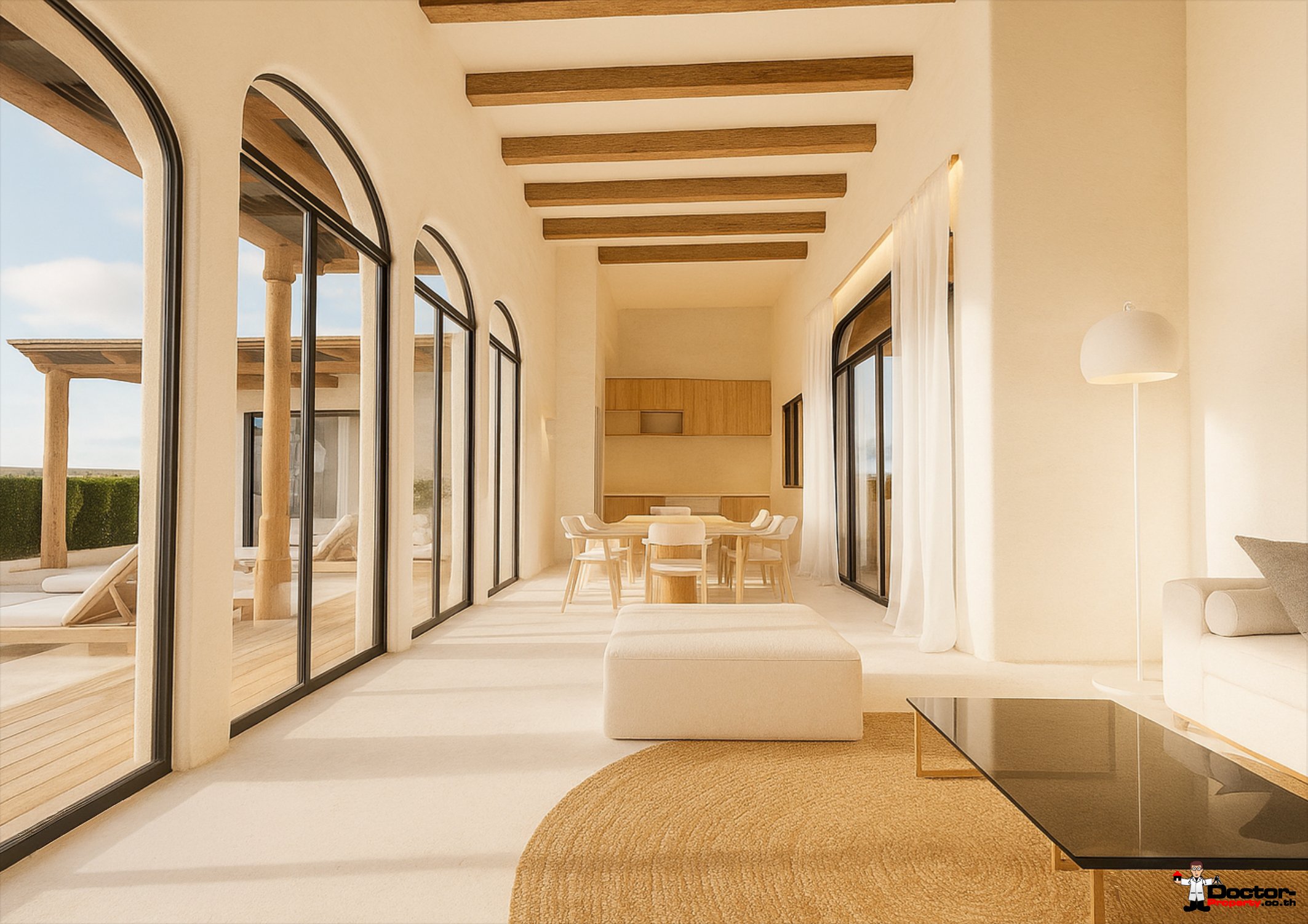 Cette superbe villa de deux étages, de type E, située dans la phase 3 du projet, est une spacieuse villa avec piscine et quatre chambres, conçue pour un mode de vie tropical moderne empreint d’une élégance bohème. Le rez-de-chaussée comprend un vaste espace de vie ouvert avec salle à manger, qui se prolonge harmonieusement sur la terrasse extérieure et la piscine privée, créant ainsi un cadre parfait pour recevoir ou se détendre en famille. À l’étage, les chambres sont agencées avec soin pour optimiser l’intimité et le confort, chacune bénéficiant de finitions élégantes et d’une abondante lumière naturelle. Avec son design contemporain, ses espaces généreux et sa piscine privée entourée d’une végétation luxuriante, cette villa offre un équilibre idéal entre luxe, fonctionnalité et confort d’un séjour de villégiature dans un cadre serein.