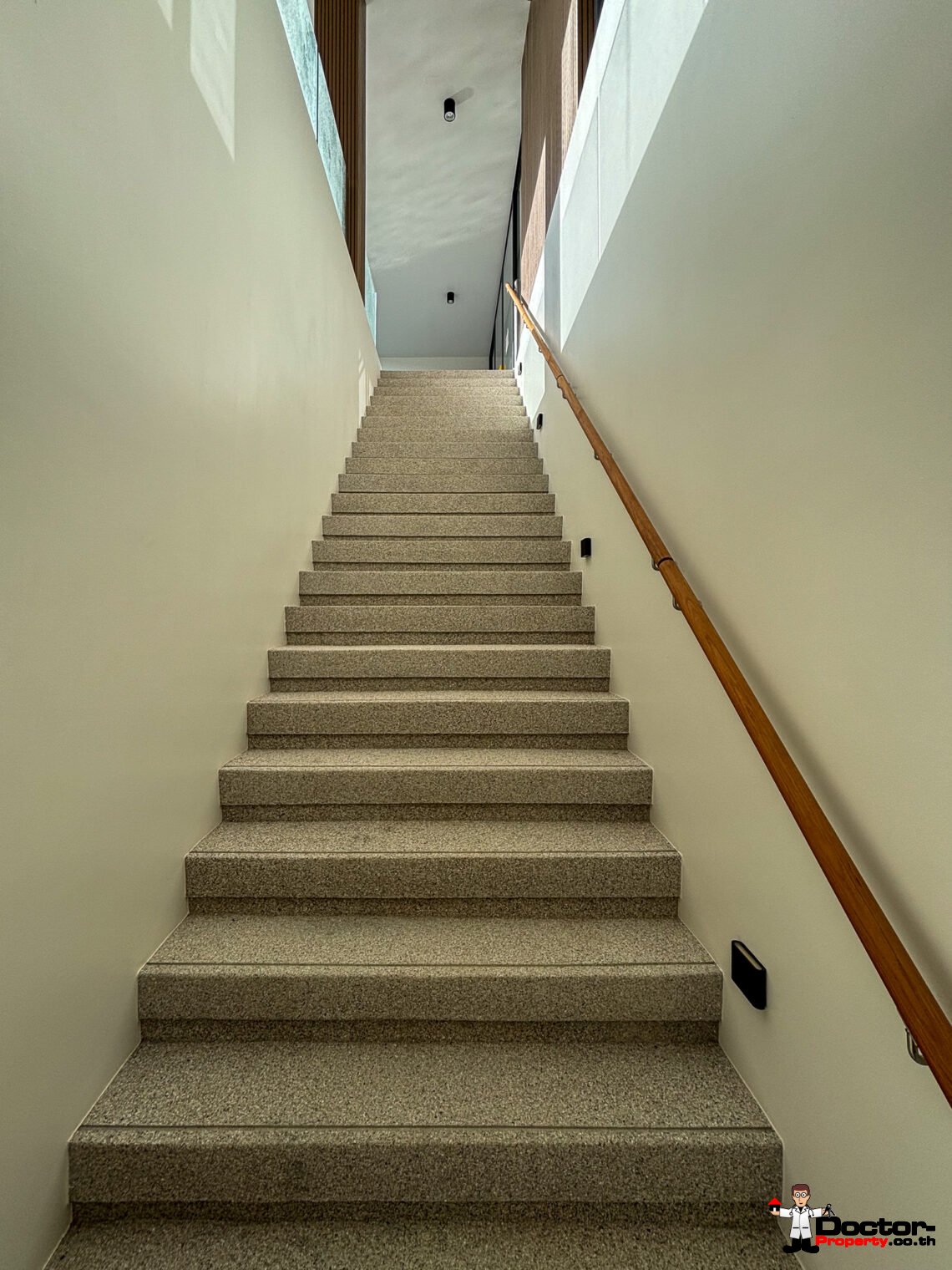 La villa comprend également des équipements pratiques tels qu’un double parking couvert et une buanderie au rez-de-chaussée. Son emplacement résidentiel paisible offre de l’intimité tout en étant à quelques minutes en voiture des commodités locales, des plages populaires et des restaurants. Cette villa est le choix idéal pour ceux qui recherchent une vie moderne et luxueuse dans un cadre serein.