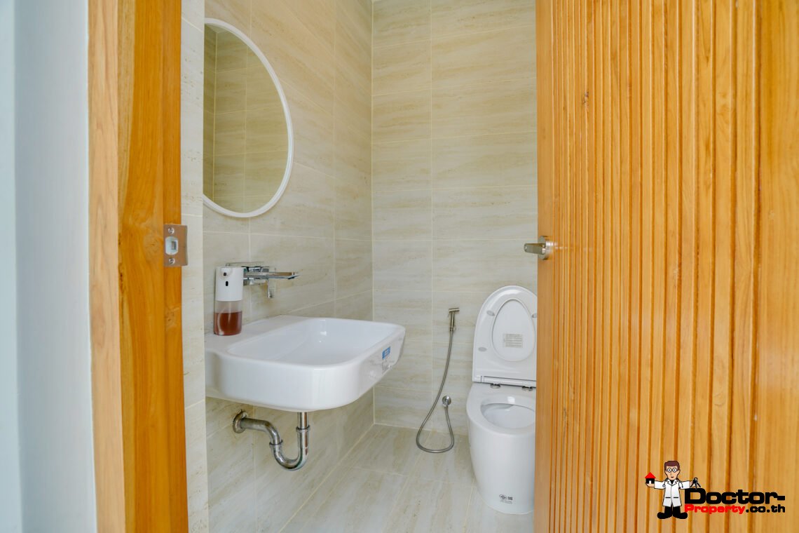 À l’intérieur, la maison est entièrement meublée avec des meubles de bon goût et de haute qualité, créant une atmosphère raffinée mais accueillante. La cuisine occidentale entièrement équipée est le rêve de tout chef, dotée d’appareils modernes et d’un grand plan de travail, ce qui la rend idéale pour préparer tout, des repas décontractés aux dîners plus élaborés. La conception réfléchie de la villa garantit une expérience de vie confortable et luxueuse avec un parking pouvant accueillir jusqu’à deux voitures ; cette propriété offre la commodité et la sécurité d’un parking privé.