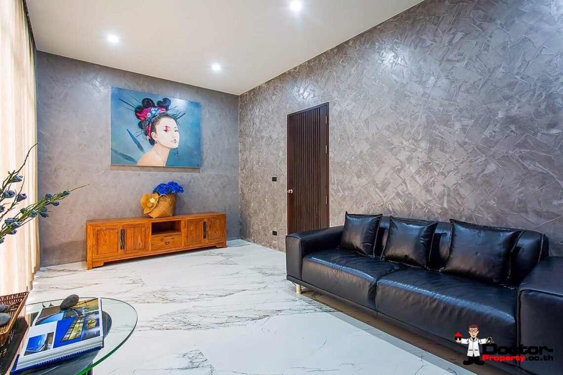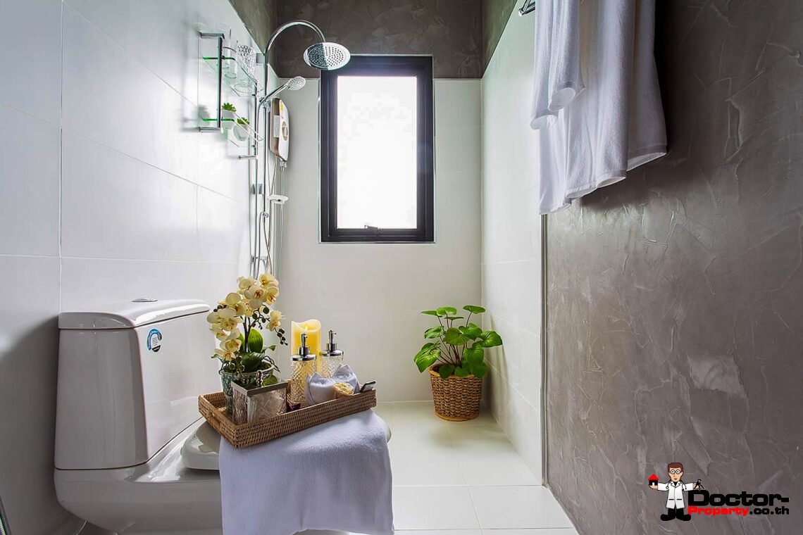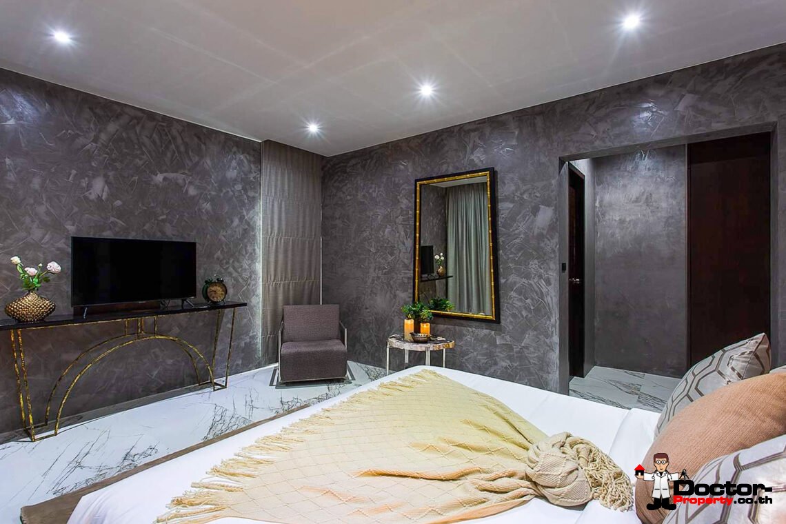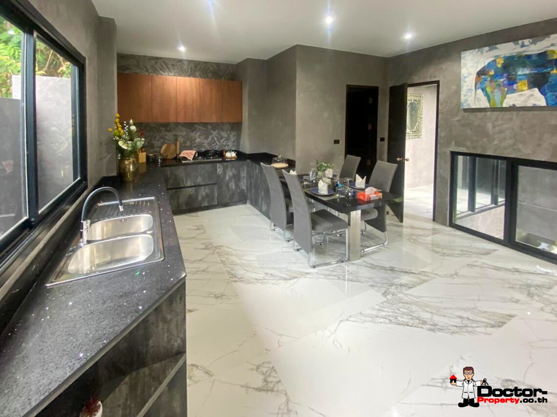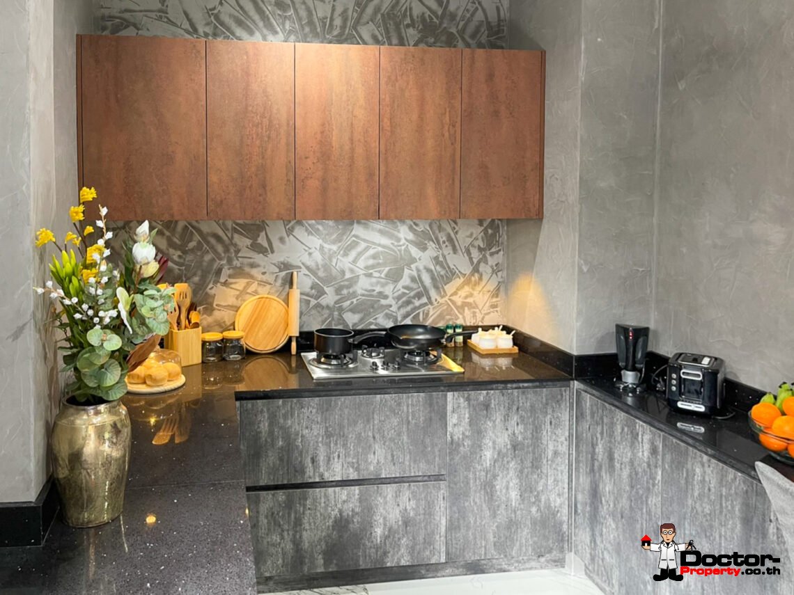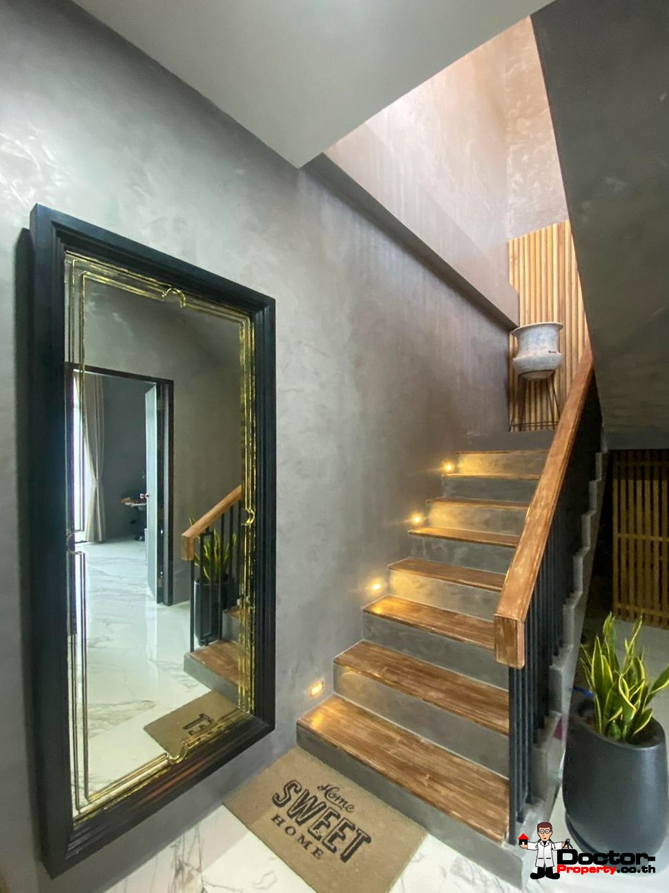 Cette villa moderne bien construite est située dans un emplacement très pratique sur la colline de Chaweng avec un accès très facile. Offrant un style unique avec une finition de haute qualité, la villa est entièrement meublée et clé en main. C’est une villa assez spacieuse, avec de hauts plafonds et des baies vitrées, ainsi qu’une façade vitrée sur toute la longueur des escaliers intérieurs, laissant entrer beaucoup de lumière.