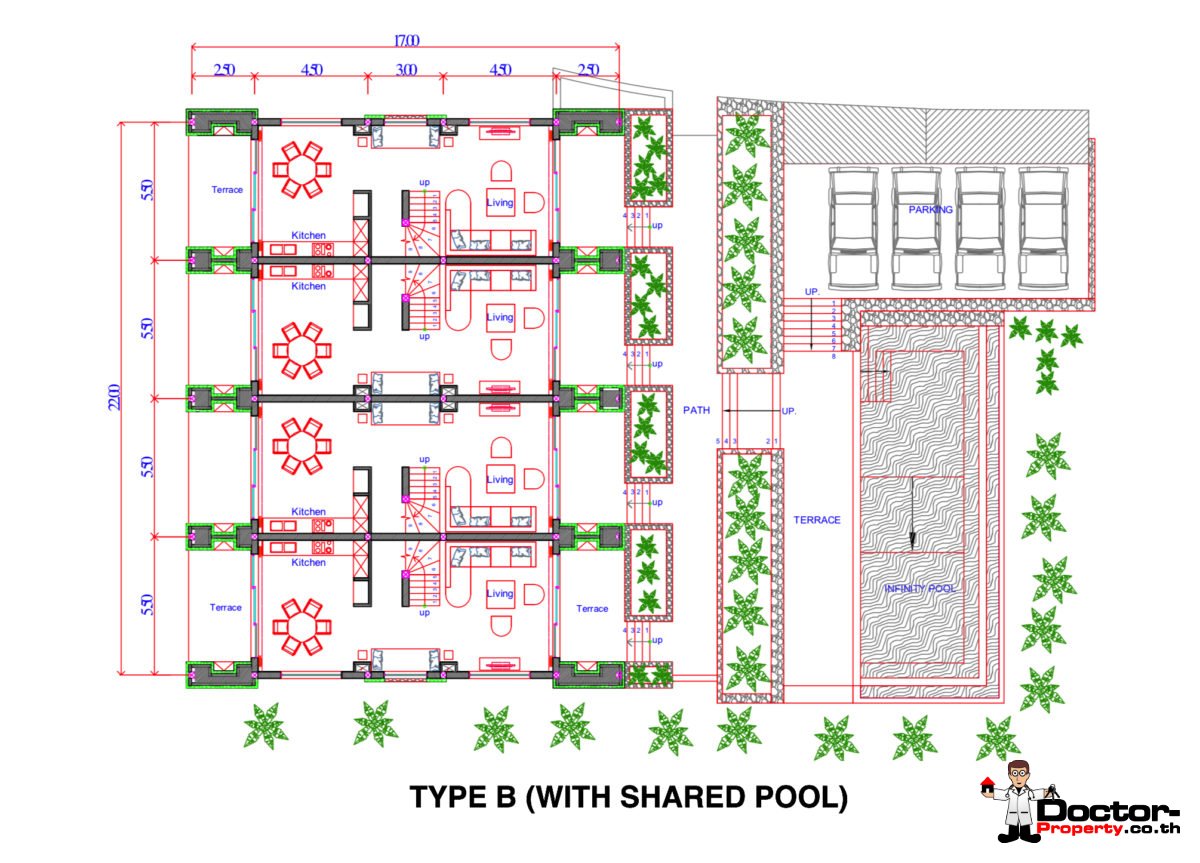These luxurious 2 bedrooms 2 bathroom duplex townhouses offer an unrivalled standard of living; designed, constructed, furnished and finished with chic Thai ornaments and artworks. Each property offers stunning views sea views over Chaweng Noi Bay and Koh Mat Lang and is available in 2 designs;