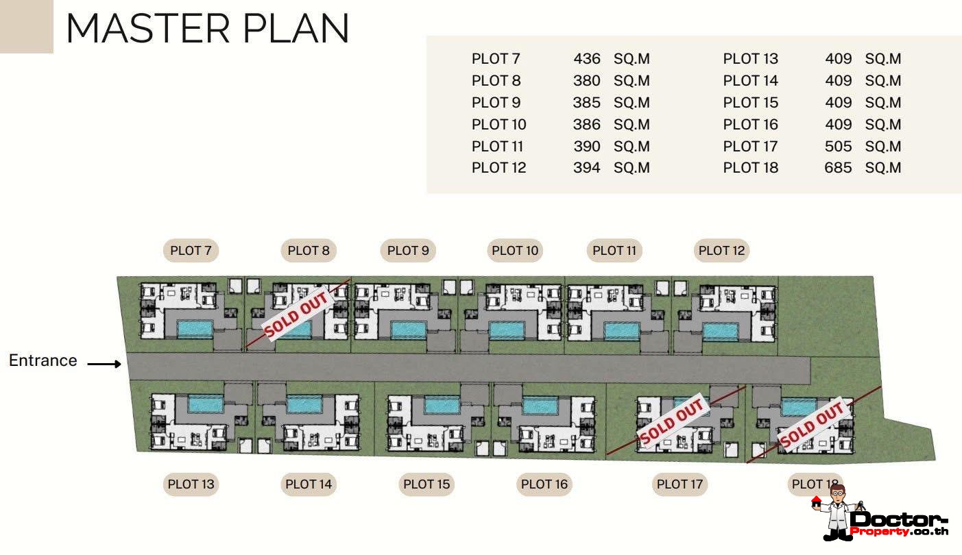 | Villa No. | Beds/Bath | Land (m2) | Size (m2) | Price (THB) |