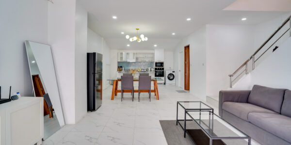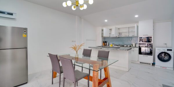 Designed with an open-plan layout, the villa’s living and dining areas flow effortlessly into the fully equipped modern kitchen, creating a bright, airy atmosphere ideal for both relaxation and entertainment. Expansive floor-to-ceiling windows allow natural light to flood the interior and frame the mesmerizing ocean views, making every room feel connected to the stunning surroundings.