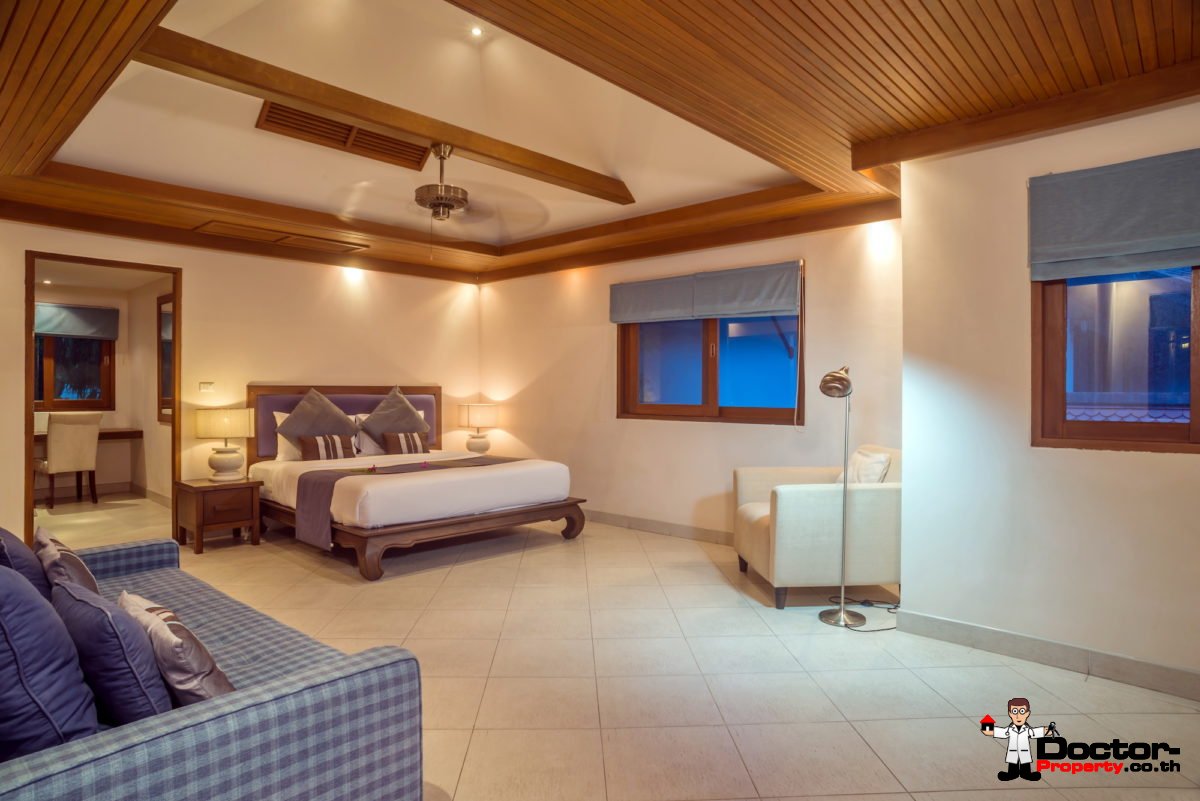 The traditional style house with its Thai-style roof and incorporation of teak hardwood is graced with an abundance of western-style luxury, making any stay in this villa a winning combination of the simple and the sophisticated. The second you step inside this villa, you will be delighted with the spacious and modern living spaces showcasing the perfect blend of western conveniences and traditional Thai touches. The roomy living, dining and kitchen areas interlink and flow effortlessly from one are to the next – making this Koh Samui luxury villa an entertainer’s delight!