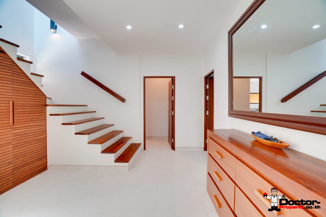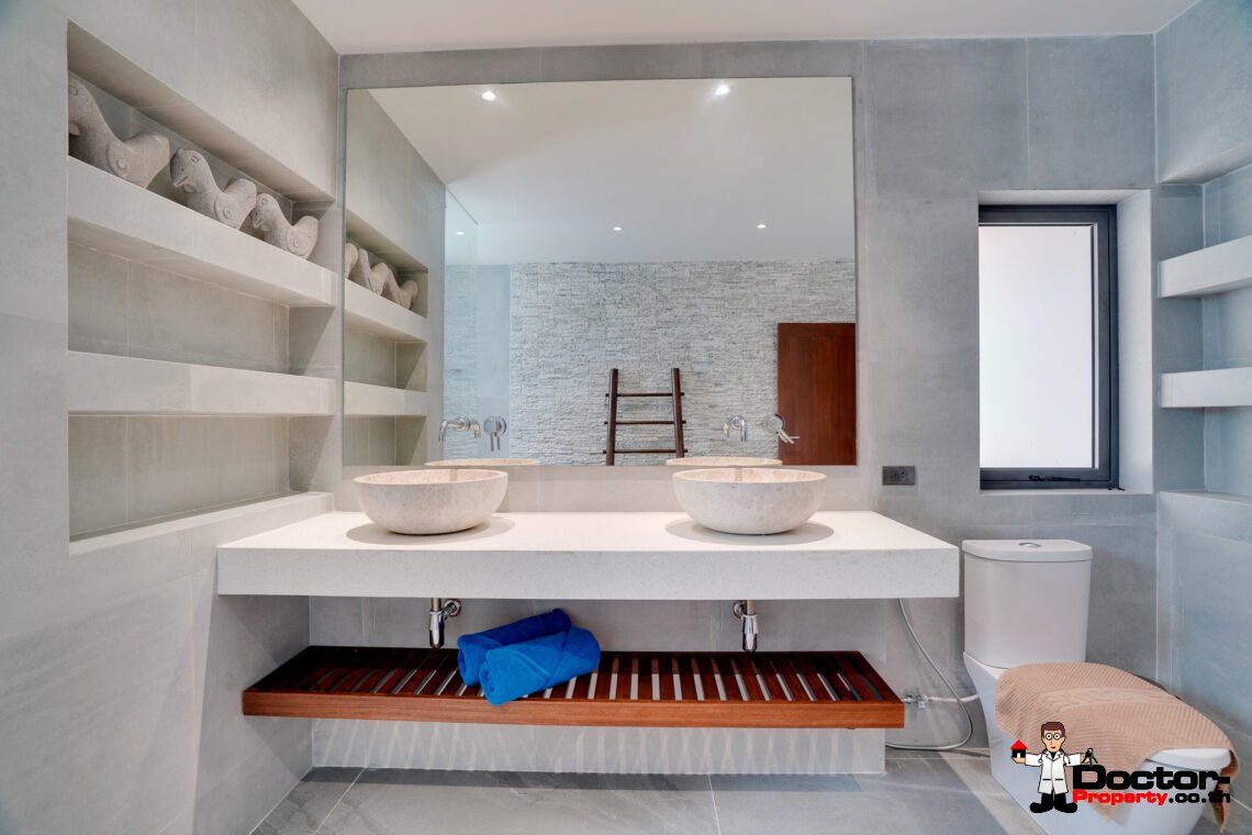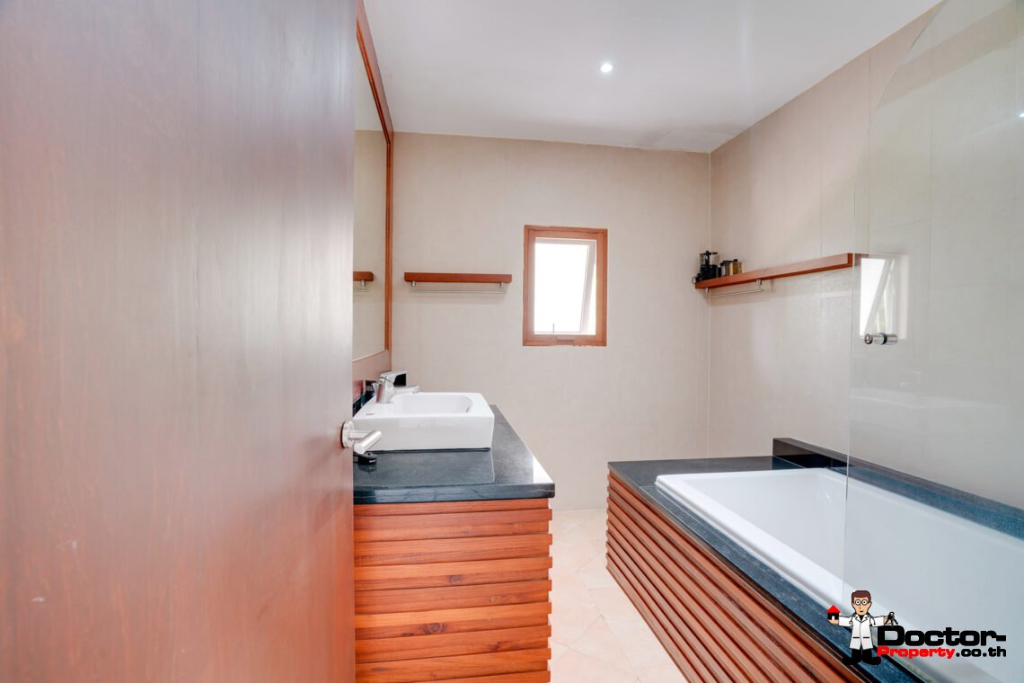 Located in a peaceful yet accessible area, it offers the perfect blend of privacy and convenience. Big Buddha Temple – Just a 5-minute drive away, the iconic Big Buddha Temple is a must-see cultural landmark offering stunning views of the island. Fisherman’s Village – A 15-minute drive from the villa, Fisherman’s Village is known for its charming streets, beachfront restaurants, and vibrant shopping scene. Chaweng Beach – In 20 minutes, at Chaweng Beach, one of Koh Samui’s most famous destinations, offering lively bars, restaurants, and pristine sandy shores. Lamai Beach – A 25-minute drive brings you to the quieter yet beautiful Lamai Beach, perfect for unwinding and enjoying a more relaxed atmosphere. Samui International Airport – A 10-minute drive, making travel to and from the island incredibly convenient.