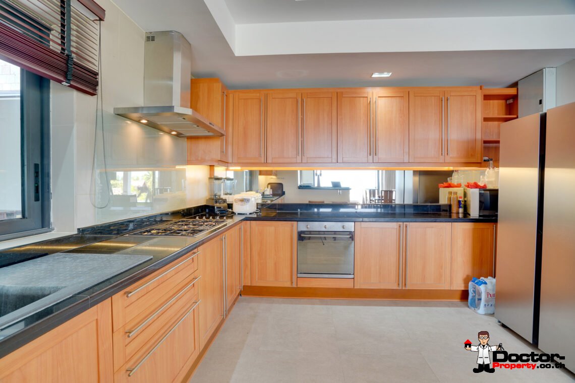 The villa features a large infinity pool with panoramic views of the azure waters and lush surroundings, providing the perfect space for enjoying the tropical climate. The modern kitchen is equipped with high-quality appliances, and the living areas open seamlessly to the outdoor terrace, creating an ideal space for alfresco dining and enjoying the stunning sunsets.